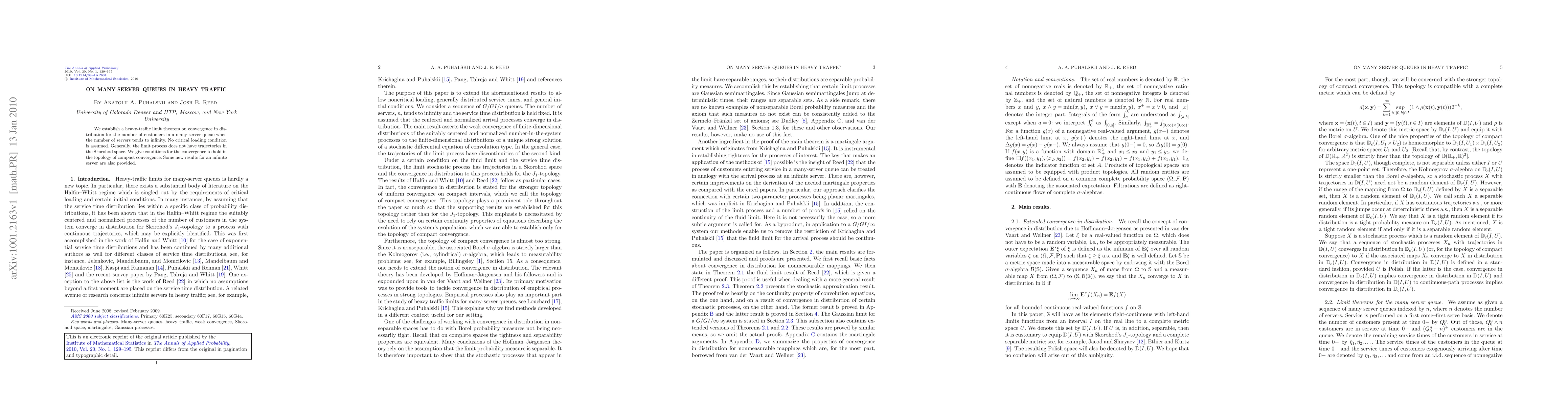 This paper establishes a heavy-traffic limit theorem for many-server queues, showing convergence in distribution without assuming critical loading conditions. The authors provide conditions for convergence in compact convergence topology and present new insights for infinite server scenarios.