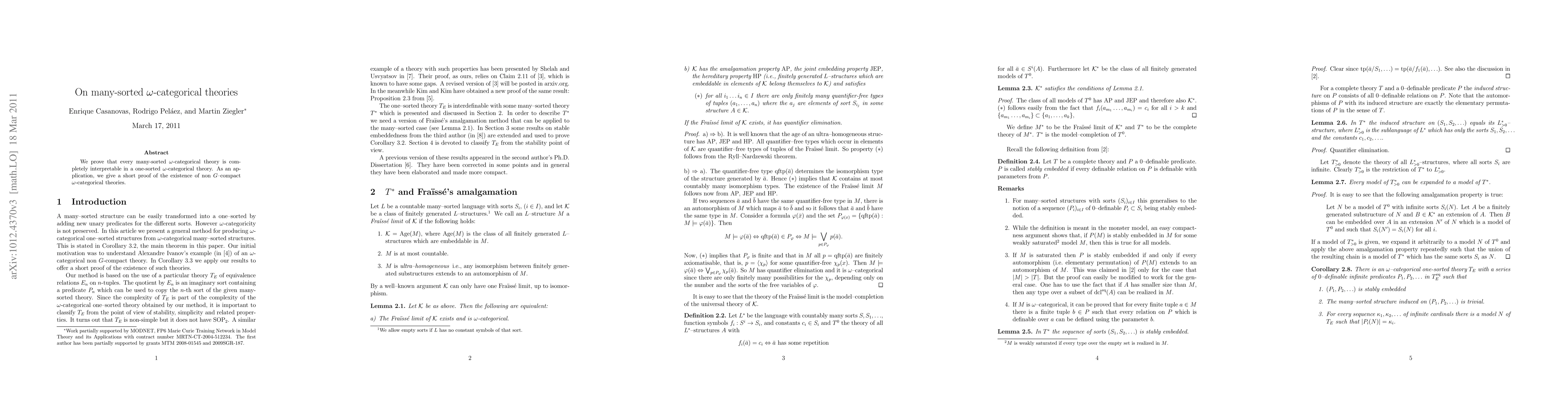 Summary: This paper demonstrates that any many-sorted $\omega$-categorical theory can be fully interpreted within a single-sorted $\omega$-categorical theory, and it provides a concise proof for the existence of non $G$-compact $\omega$-categorical theories.