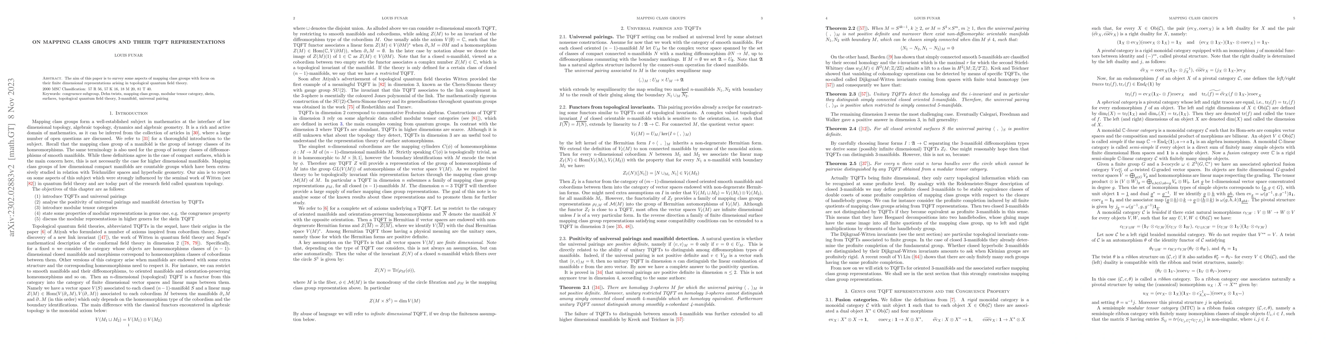 This paper surveys mapping class groups and explores their finite-dimensional representations, particularly those originating from topological quantum field theories (TQFT).