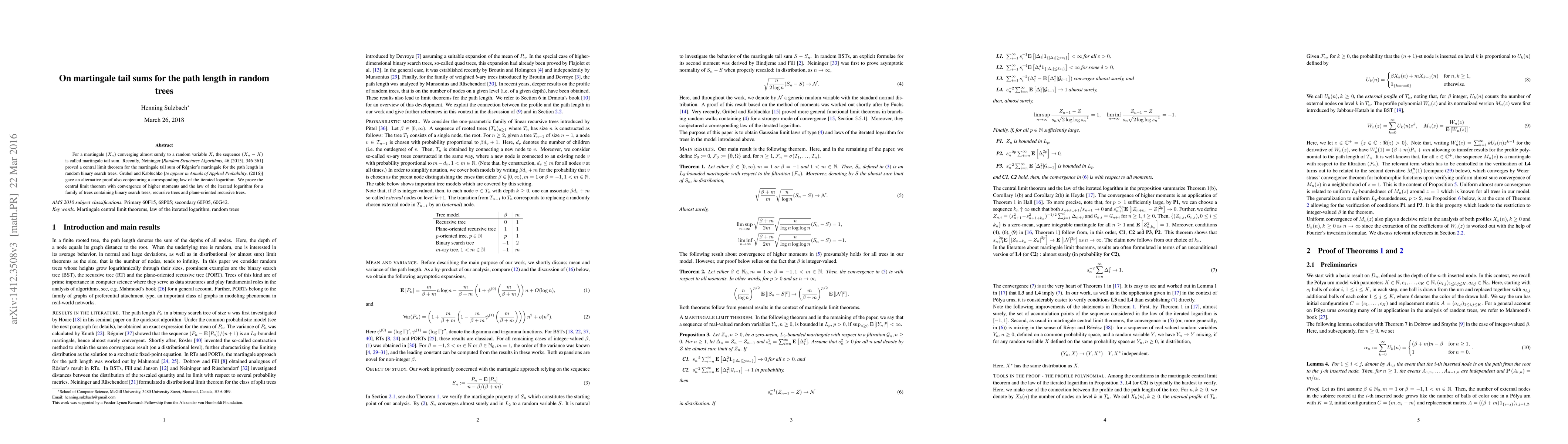 This paper proves a central limit theorem and a law of the iterated logarithm for martingale tail sums related to the path length in a broad family of random trees, including binary search trees, recursive trees, and plane-oriented recursive trees. The results extend previous findings and conjectures by Neininger and Grübel and Kabluchko.