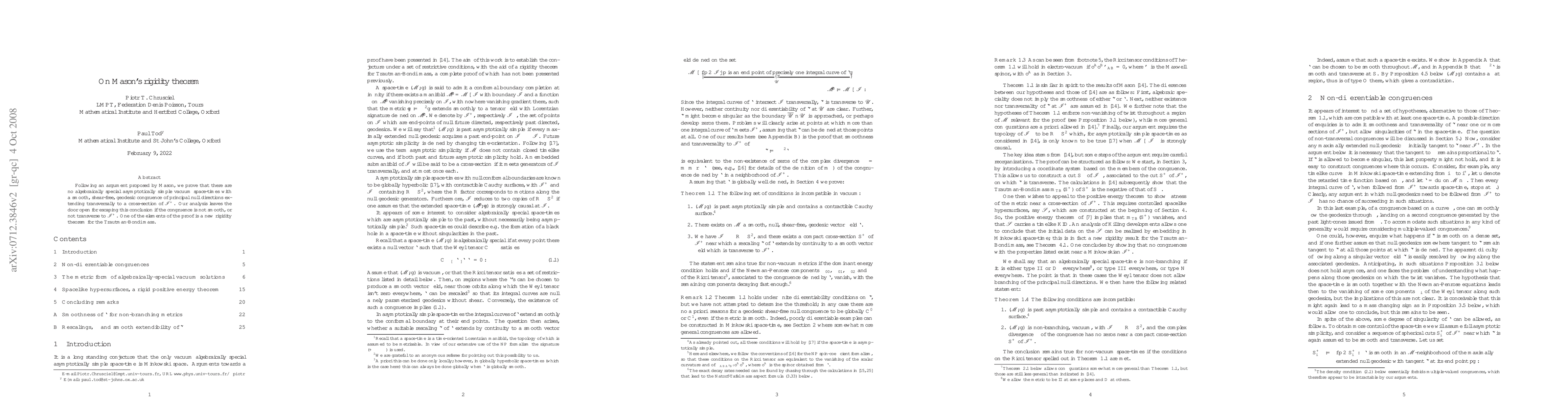 Following an argument proposed by Mason, we prove that there are no algebraically special asymptotically simple vacuum space-times with a smooth, shear-free, geodesic congruence of principal null directions extending transversally to a cross-section of Scri. Our analysis leaves the door open for escaping this conclusion if the congruence is not smooth, or not transverse to Scri. One of the elements of the proof is a new rigidity theorem for the Trautman-Bondi mass.