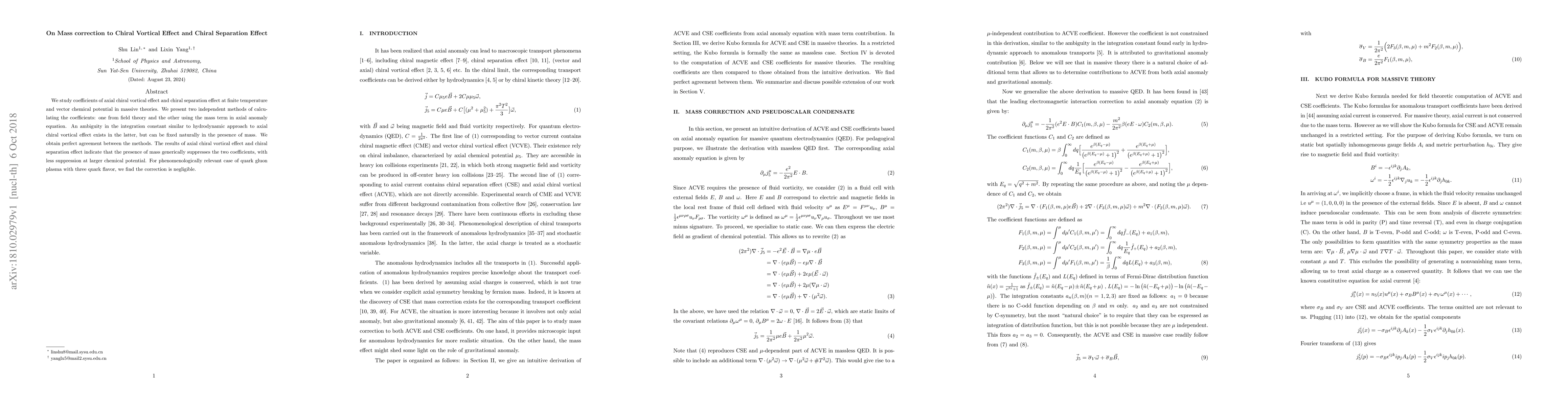 This paper investigates the coefficients of axial chiral vortical and chiral separation effects in massive theories at finite temperature and vector chemical potential. It uses two independent methods to calculate these coefficients, finding perfect agreement and showing that mass generally suppresses these coefficients, with less suppression at higher chemical potentials. For quark gluon plasma with three quark flavors, mass corrections are negligible.