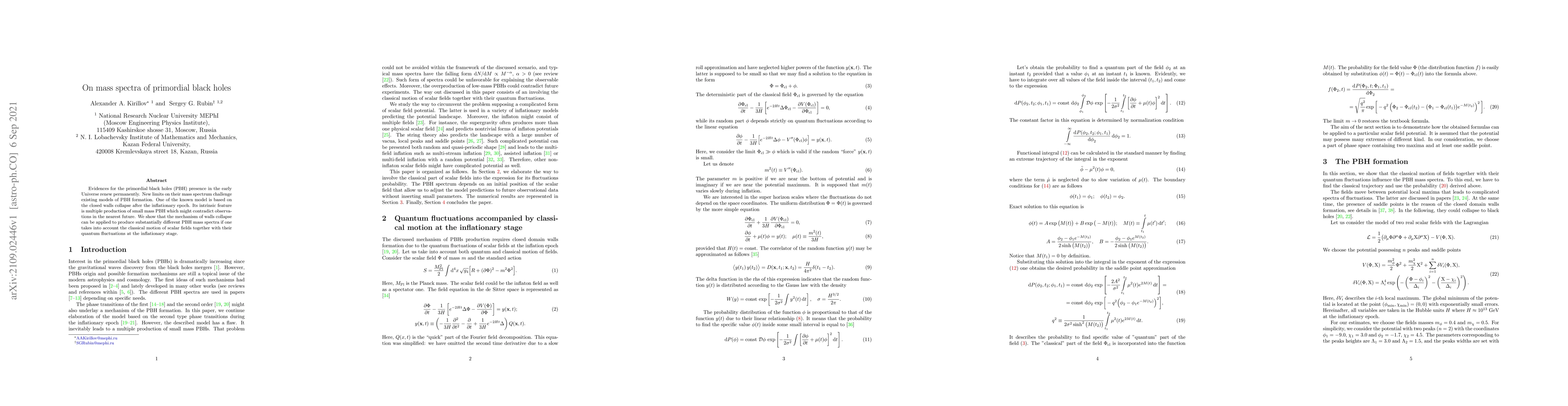 This paper discusses new evidence and constraints on the mass spectrum of primordial black holes (PBH), challenging existing formation models. It proposes that incorporating classical motion and quantum fluctuations of scalar fields during inflation can yield different PBH mass spectra, potentially resolving discrepancies with observational data.