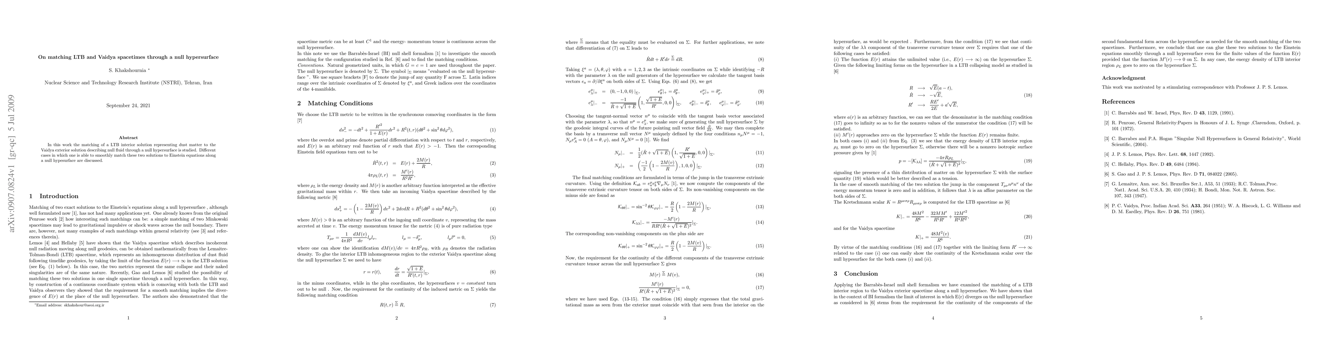 This paper investigates the smooth matching of a LTB interior solution (representing dust matter) with a Vaidya exterior solution (describing null fluid) through a null hypersurface, exploring various cases that satisfy Einstein's equations. The study focuses on the conditions required for this seamless transition.