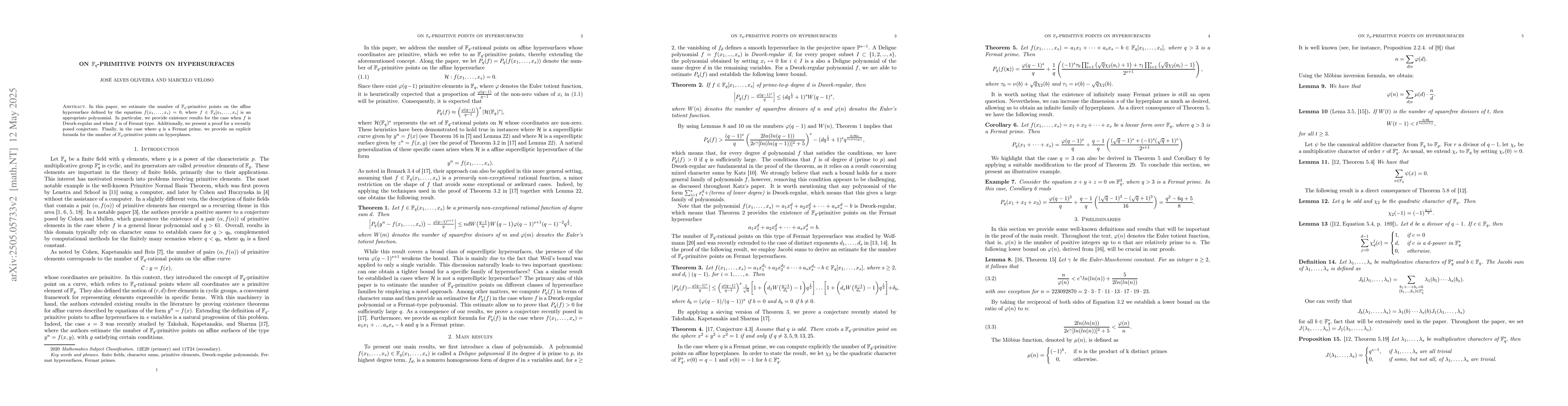 In this paper, we estimate the number of $\mathbb{F}_q$-primitive points on the affine hypersurface defined by the equation $f(x_1,\ldots,x_s)=0$, where $f\in\mathbb{F}_q[x_1,\dots,x_s]$ is an appropriate polynomial. In particular, we provide existence results for the case when $f$ is Dwork-regular and when $f$ is of Fermat type. Additionally, we present a proof for a recently posed conjecture. Finally, in the case where $q$ is a Fermat prime, we provide an explicit formula for the number of $\mathbb{F}_q$-primitive points on hyperplanes.