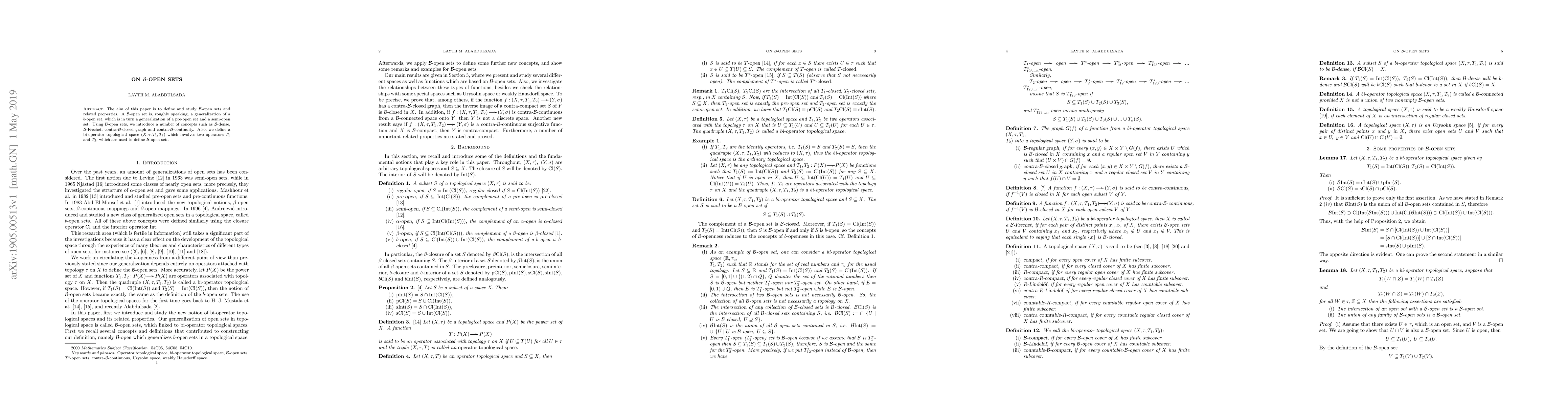 This paper defines and explores $\mathcal{B}$-open sets, a generalization of $b$-open sets, and introduces related concepts like $\mathcal{B}$-dense and $\mathcal{B}$-Frechet. It also presents a bi-operator topological space using two operators to define $\mathcal{B}$-open sets.