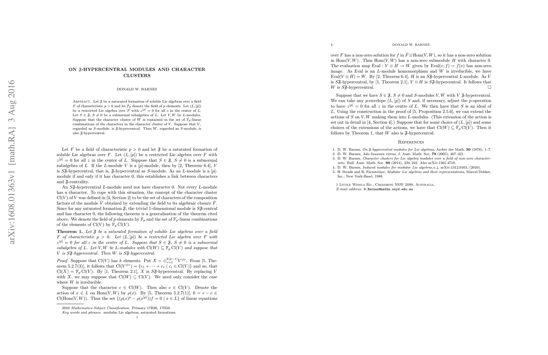 Let $\mathfrak F$ be a saturated formation of soluble Lie algebras over a field $F$ of characteristic $p > 0$ and let ${\mathbb F}_p$ denote the field of $p$ elements. Let $(L,[p])$ be a restricted Lie algebra over $F$ with $z^{$\scriptstyle [p]$}=0$ for all $z$ in the centre of $L$. Let $S \in \mathfrak F$, $S\ne 0$ be a subnormal subalgebra of $L$. Let $V, W$ be $L$-modules. Suppose that the character cluster of $W$ is contained in the set of ${\mathbb F}_p$-linear combinations of the characters in the character cluster of $V$. Suppose that $V$, regarded as $S$-module, is $\mathfrak F$-hypercentral. Then $W$, regarded as $S$-module, is also $\mathfrak F$-hypercentral.
