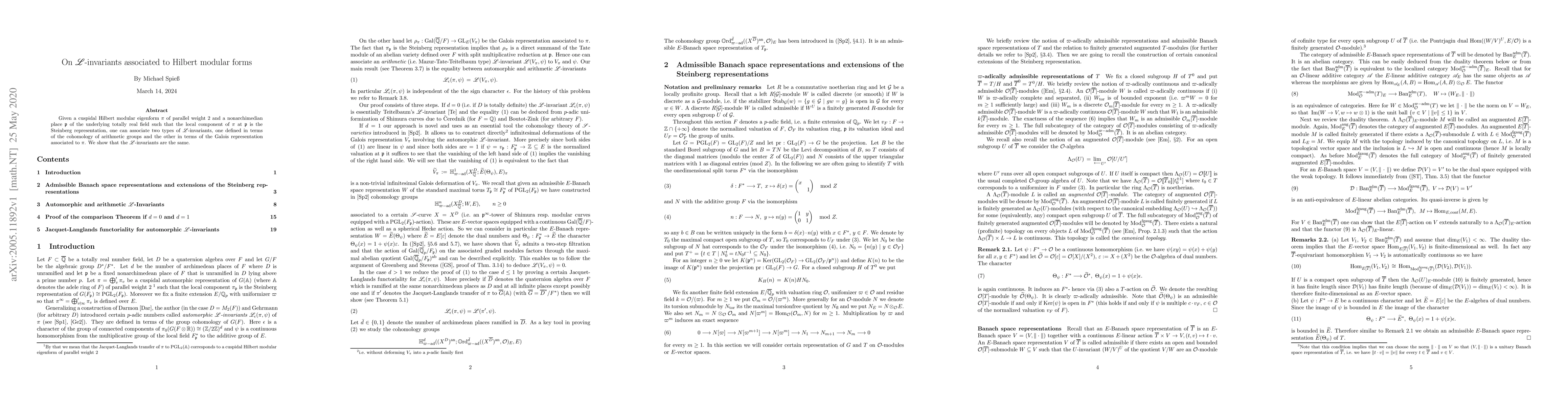 This paper associates two types of $\mathscr L$-invariants to a cuspidal Hilbert modular eigenform, showing they coincide when the local component at a specific nonarchimedian place matches the Steinberg representation.
