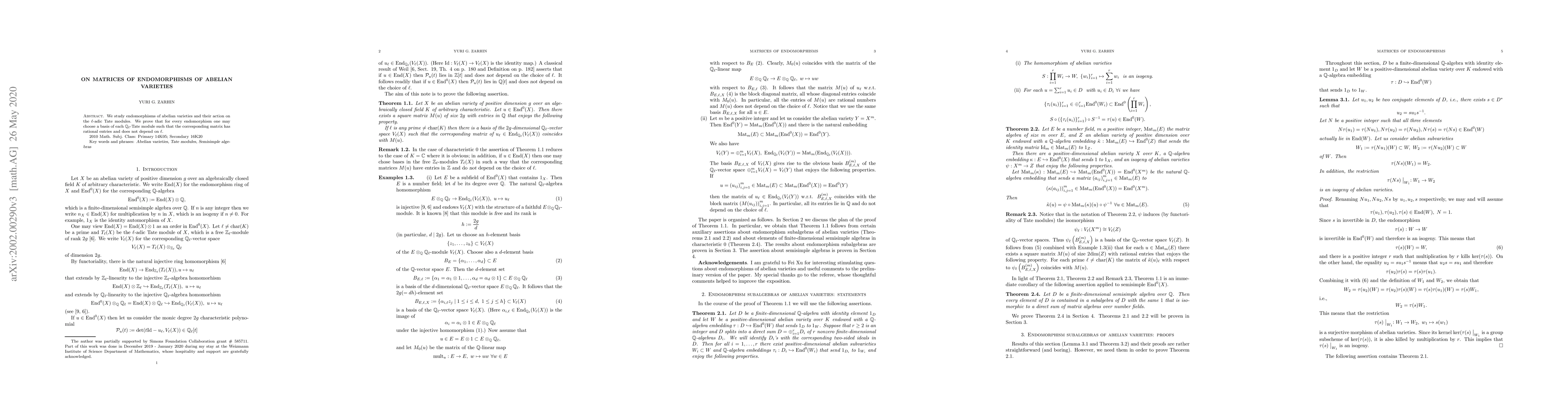 We study endomorphisms of abelian varieties and their action on the l-adic Tate modules. We prove that for every endomorphism one may choose a basis of each Tate module such that the corresponding matrix has rational entries and does not depend on l.