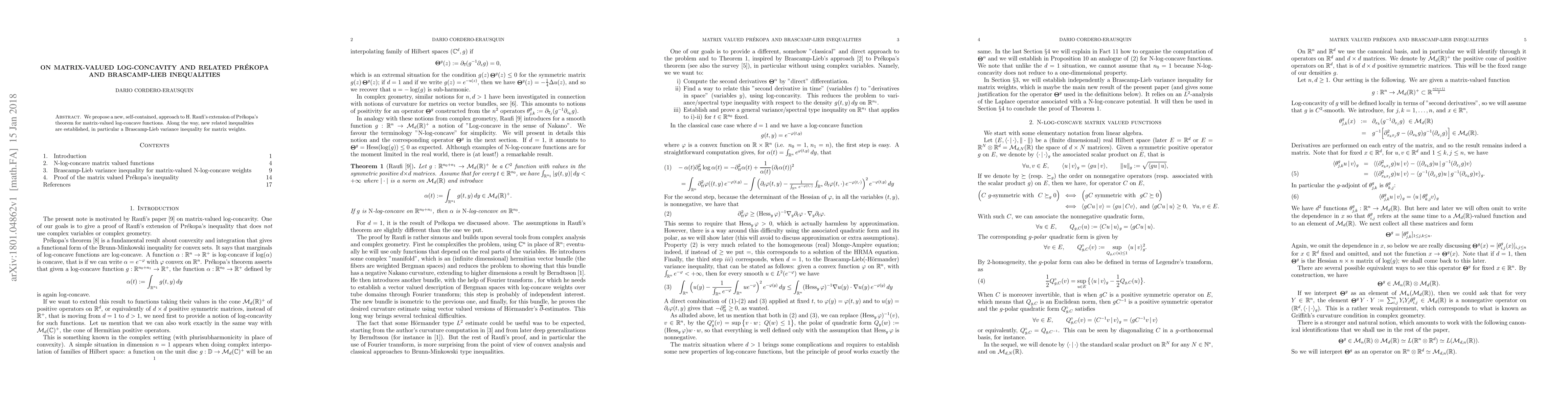 Researchers extend Prekopa's theorem to matrix-valued log-concave functions with a new approach, establishing related inequalities like the Brascamp-Lieb variance inequality for matrix weights.