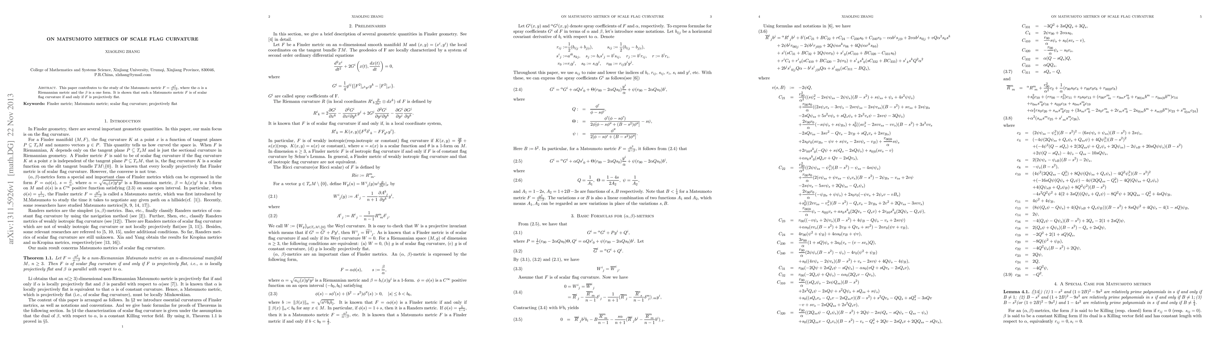This paper contributes to the study of the Matsumoto metric F=alpha^2/beta, where the alpha is a Riemannian metric and the beta is a one form. It is shown that such a Matsumoto metric F is of scalar flag curvature if and only if F is projectively flat.