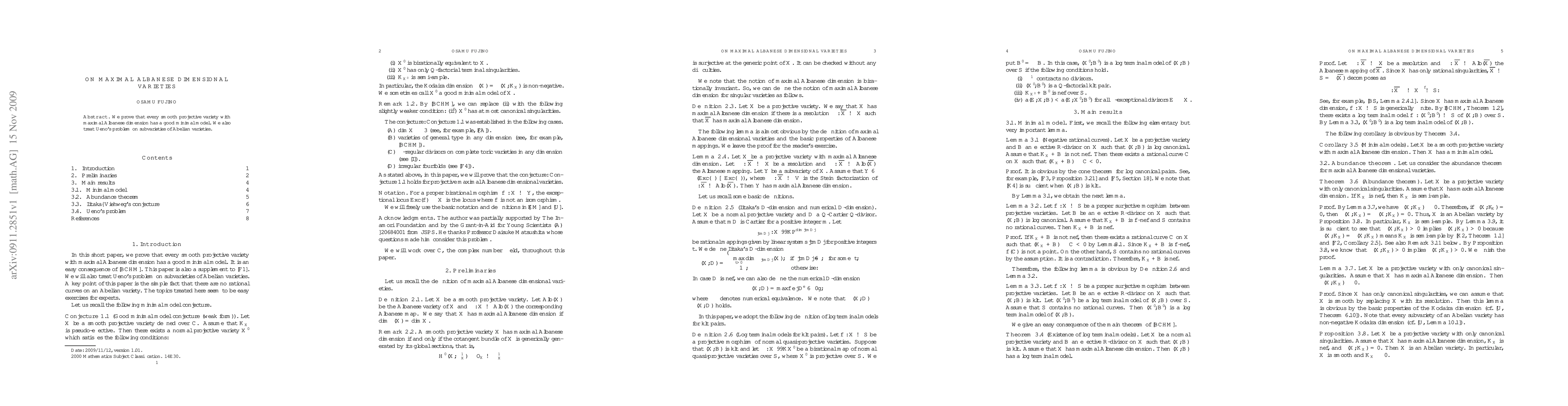 Summary: The paper demonstrates that smooth projective varieties with maximal Albanese dimension possess good minimal models. Additionally, it addresses Ueno's problem regarding subvarieties within Abelian varieties.