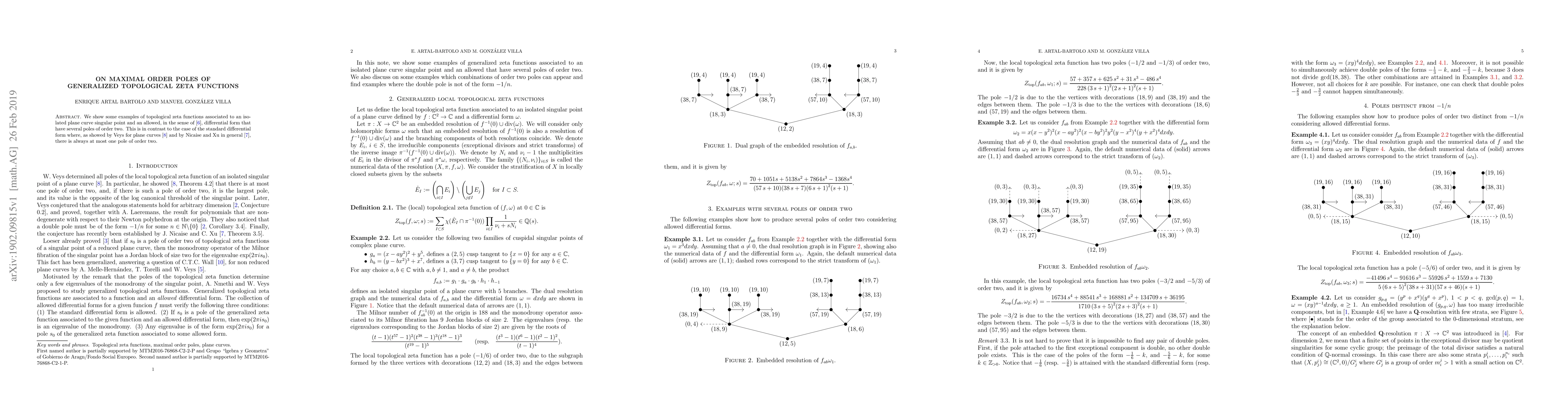 This paper demonstrates that certain generalized topological zeta functions linked to isolated plane curve singularities can have multiple poles of order two, contrasting with the standard differential form case which typically allows at most one such pole.