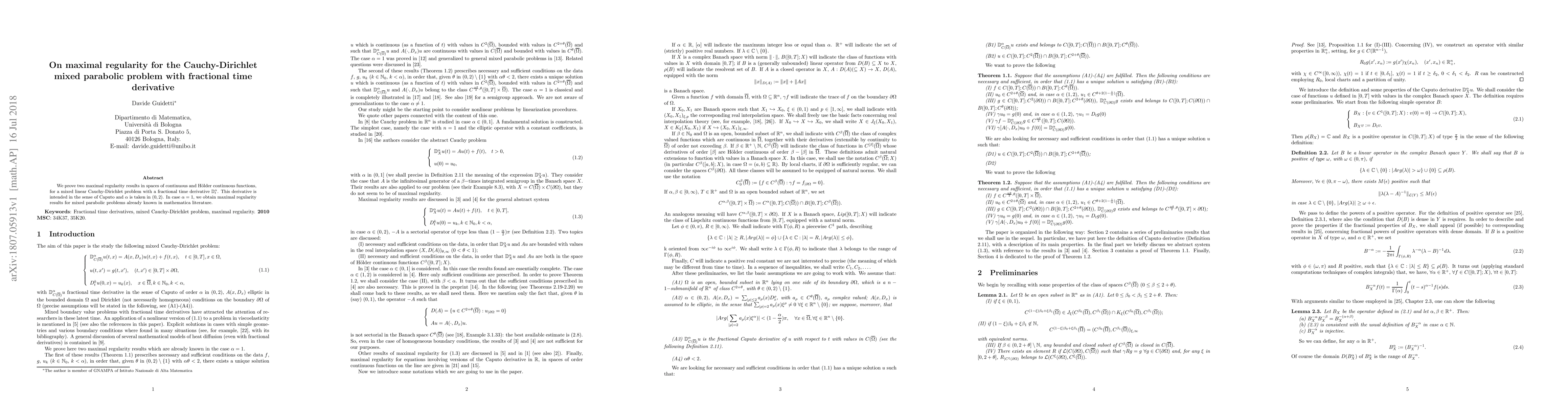 This paper proves maximal regularity results for a mixed linear Cauchy-Dirichlet problem involving a Caputo fractional time derivative $\mathbb{D}_t^\alpha$ with $\alpha \in (0, 2)$, in continuous and Hölder continuous function spaces. For $\alpha = 1$, the results recover known maximal regularity for classical mixed parabolic problems.