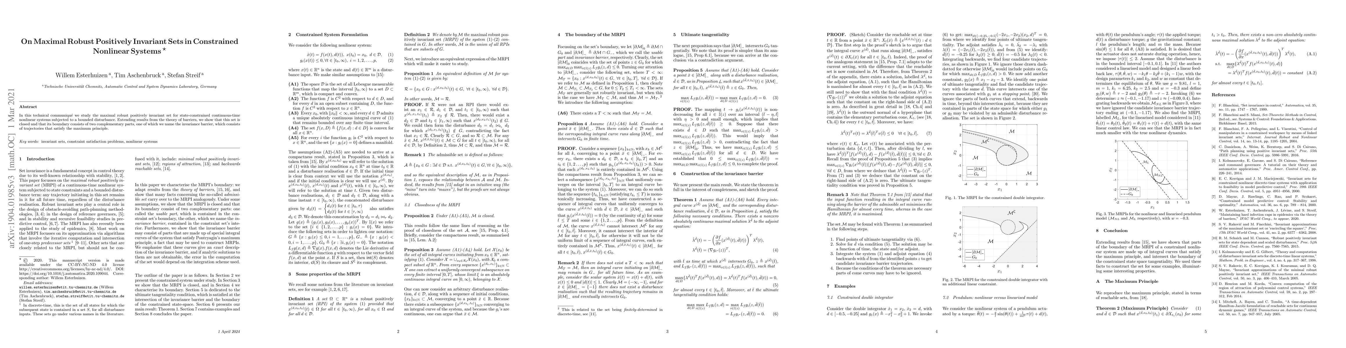 This paper explores maximal robust positively invariant sets in state-constrained nonlinear systems with bounded disturbances. It extends barrier theory to demonstrate the closed nature of these sets and identifies a boundary composed of two parts, including an "invariance barrier" of trajectories satisfying the maximum principle.