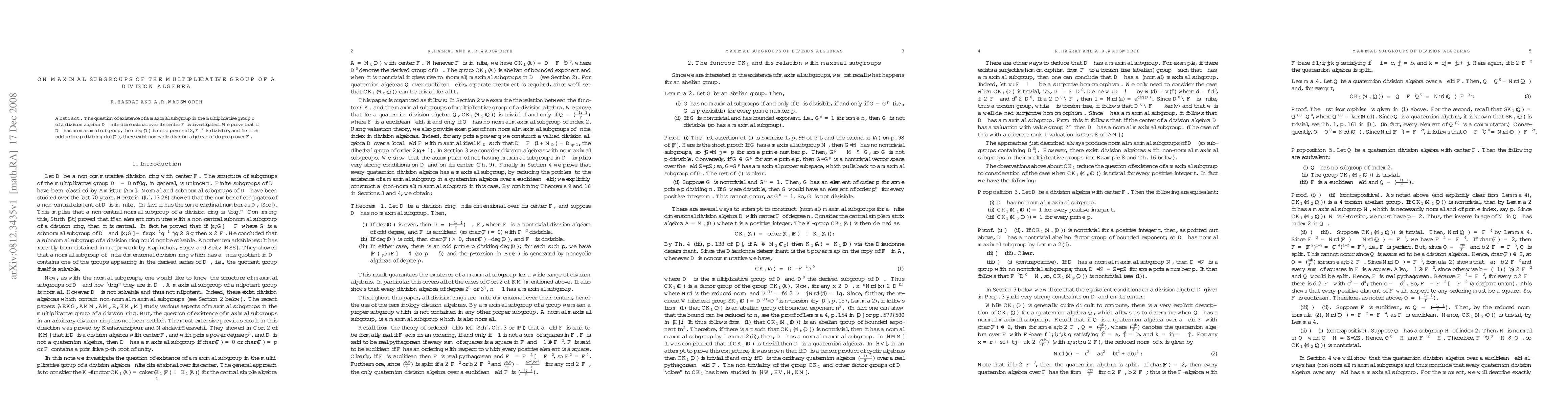 Summary: This paper investigates the existence of maximal subgroups in the multiplicative group D* of a finite-dimensional division algebra D over its center F, proving that the absence of such subgroups implies that the degree of D is not a power of 2, F^{*2} is divisible, and there exist noncyclic division algebras of certain prime degrees over F.