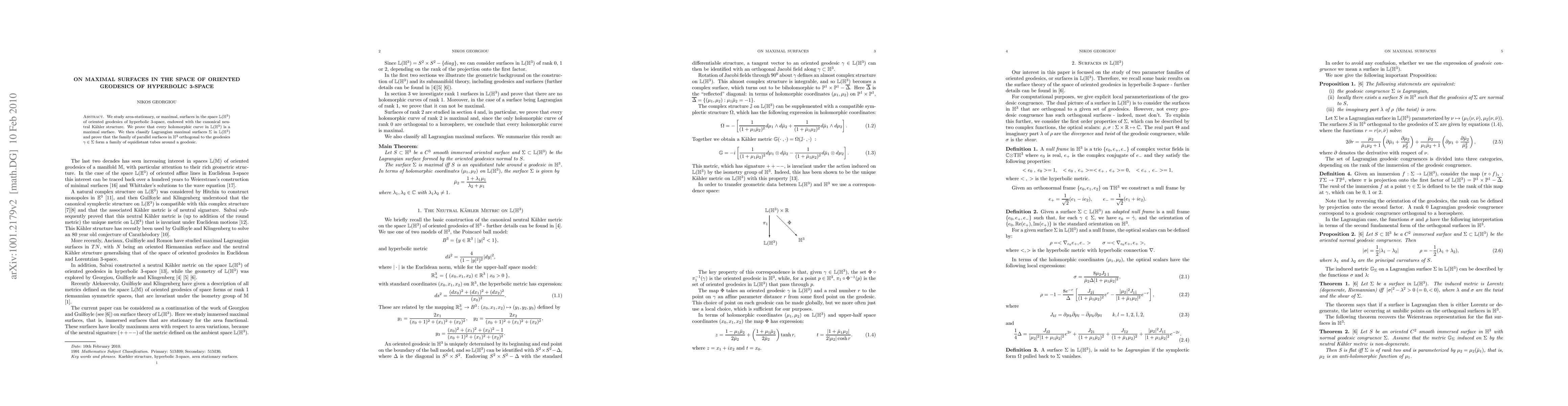 Research investigates maximal surfaces in hyperbolic 3-space, finding that every holomorphic curve is a maximal surface and classifying Lagrangian maximal surfaces as forming equidistant tubes around geodesics.