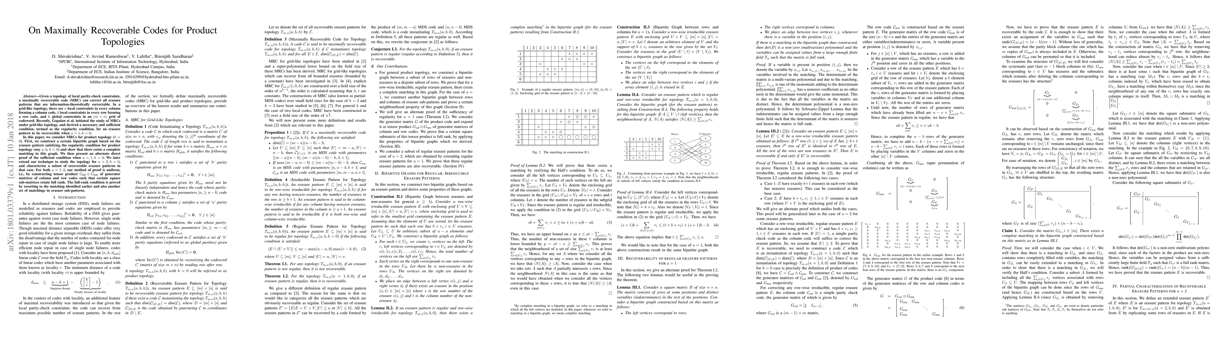 Given a topology of local parity-check constraints, a maximally recoverable code (MRC) can correct all erasure patterns that are information-theoretically correctable. In a grid-like topology, there are $a$ local constraints in every column forming a column code, $b$ local constraints in every row forming a row code, and $h$ global constraints in an $(m \times n)$ grid of codeword. Recently, Gopalan et al. initiated the study of MRCs under grid-like topology, and derived a necessary and sufficient condition, termed as the regularity condition, for an erasure pattern to be recoverable when $a=1, h=0$. In this paper, we consider MRCs for product topology ($h=0$). First, we construct a certain bipartite graph based on the erasure pattern satisfying the regularity condition for product topology (any $a, b$, $h=0$) and show that there exists a complete matching in this graph. We then present an alternate direct proof of the sufficient condition when $a=1, h=0$. We later extend our technique to study the topology for $a=2, h=0$, and characterize a subset of recoverable erasure patterns in that case. For both $a=1, 2$, our method of proof is uniform, i.e., by constructing tensor product $G_{\text{col}} \otimes G_{\text{row}}$ of generator matrices of column and row codes such that certain square sub-matrices retain full rank. The full-rank condition is proved by resorting to the matching identified earlier and also another set of matchings in erasure sub-patterns.