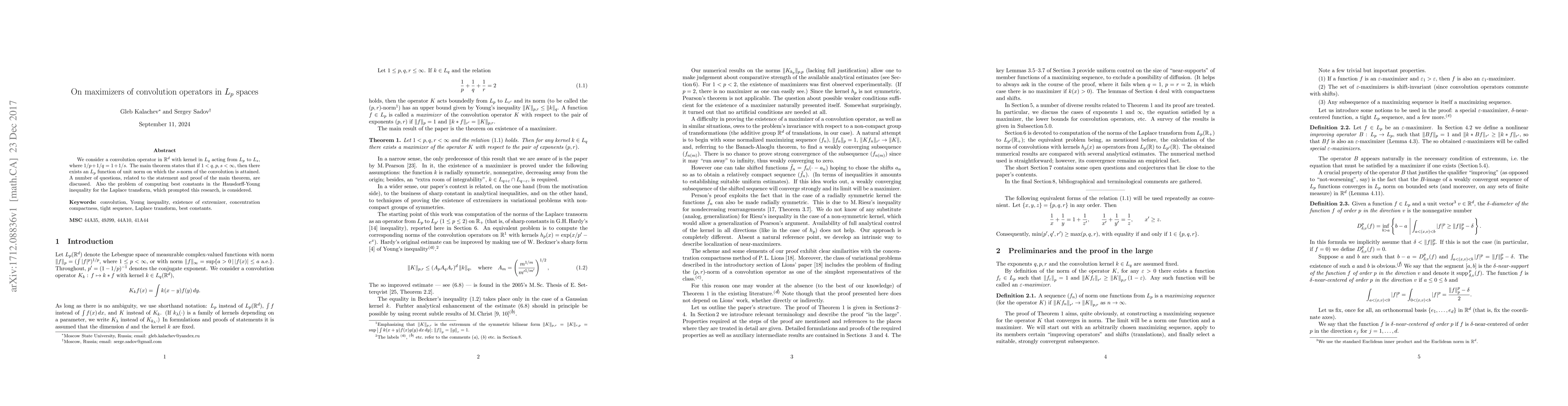 to $L_s$, where $1/p+1/q=1+1/s$. The main theorem states that if