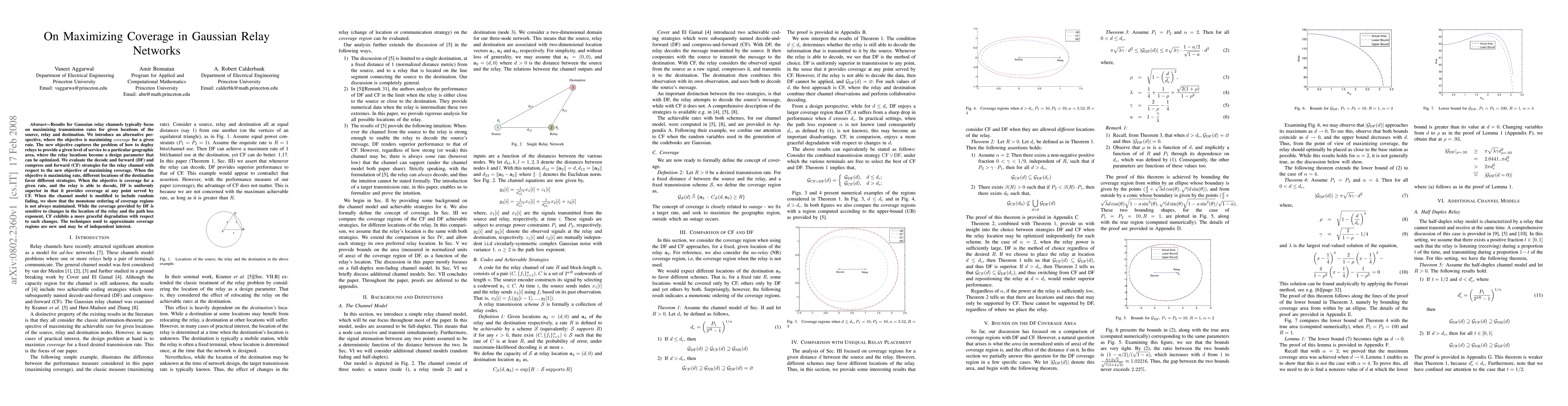 This paper explores optimizing relay placement in Gaussian relay networks to maximize coverage for a given transmission rate, contrasting decode and forward (DF) and compress and forward (CF) strategies. DF is shown to provide superior coverage compared to CF under static conditions, while CF demonstrates more stable performance under random fading.