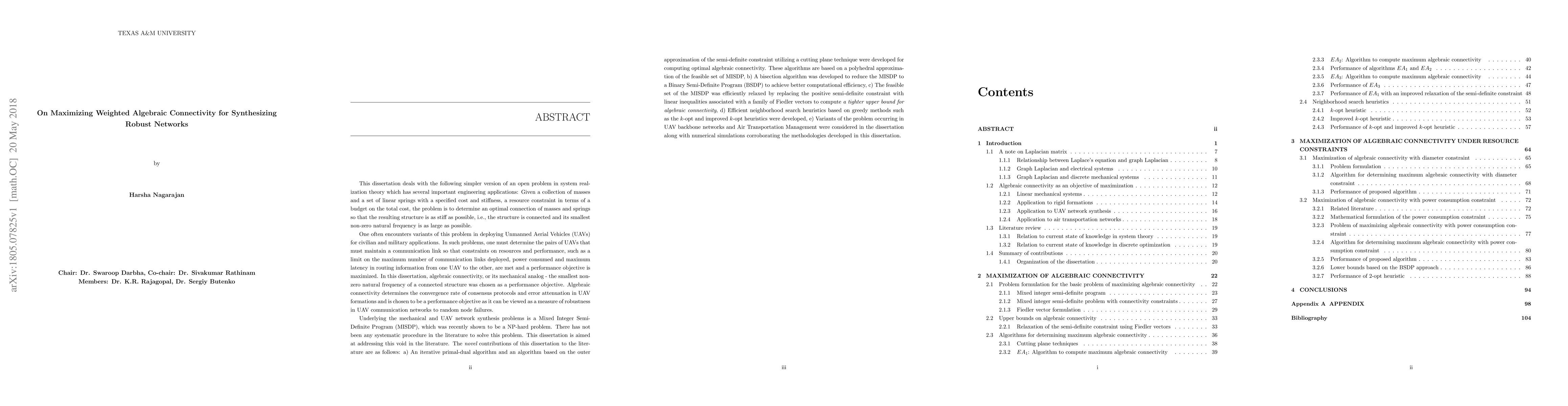 This article deals with the following simpler version of an open problem in system realization theory which has several important engineering applications: Given a collection of masses and a set of linear springs with a specified cost and stiffness, a resource constraint in terms of a budget on the total cost, the problem is to determine an optimal connection of masses and springs so that the resulting structure is as stiff as possible, i.e., the structure is connected and its smallest non-zero natural frequency is as large as possible. In this article, algebraic connectivity, or its mechanical analog - the smallest non-zero natural frequency of a connected structure was chosen as a performance objective. Algebraic connectivity determines the convergence rate of consensus protocols and error attenuation in Unmanned Aerial Vehicle (UAV) formations and is chosen to be a performance objective as it can be viewed as a measure of robustness in UAV communication networks to random node failures. Underlying the mechanical and UAV network synthesis problems is a Mixed Integer Semi-Definite Program (MISDP), an NP-hard problem. The novel contributions of this article lies in developing efficient algorithms to solve the MISDPs based on iterative primal-dual algorithm, cutting-plane methods for polyhedral outer-approximation, capturing the feasible set of MISDPs using Fiedler vectors or Laplacian with equivalency guarantees, and efficient neighborhood-search-based heuristic algorithms.