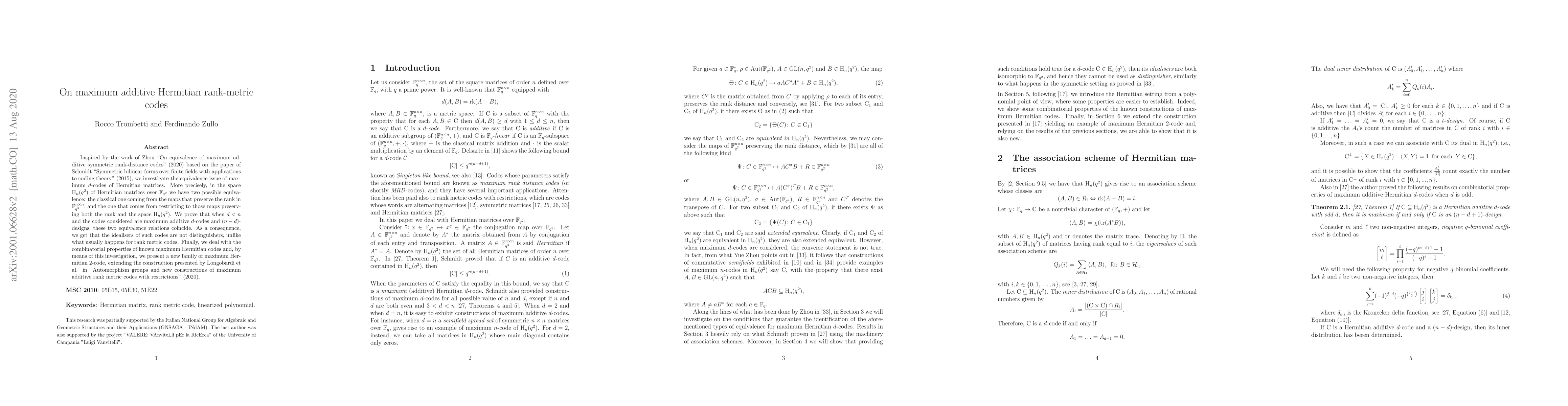 rank-distance codes" (2020) based on the paper of Schmidt "Symmetric bilinear