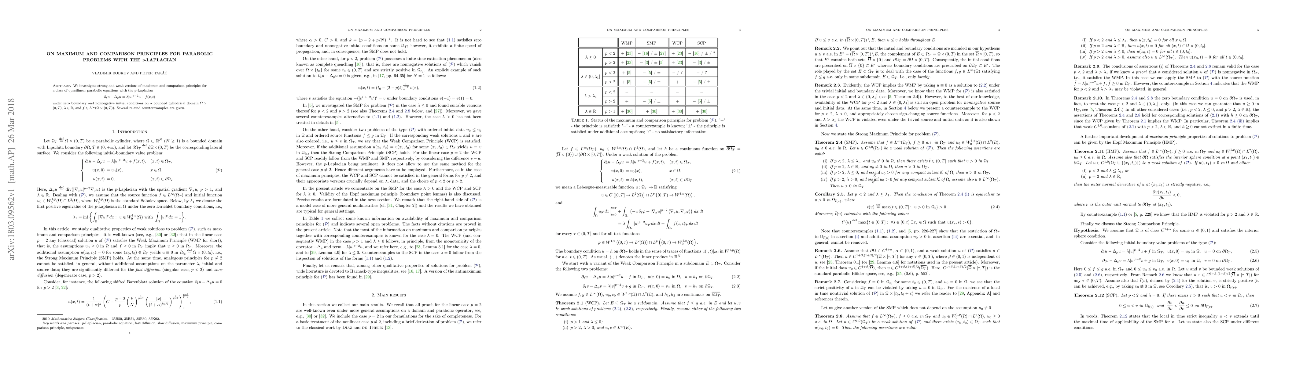 This paper explores strong and weak versions of maximum and comparison principles for quasilinear parabolic equations involving the $p$-Laplacian, providing counterexamples to illustrate the limitations of these principles. The study focuses on equations under zero boundary and nonnegative initial conditions in a bounded cylindrical domain.