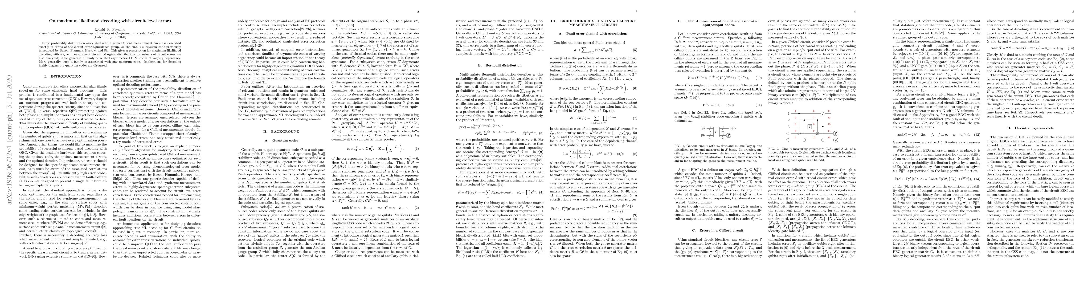 Error probability distribution associated with a given Clifford measurement circuit is described exactly in terms of the circuit error-equivalence group, or the circuit subsystem code previously introduced by Bacon, Flammia, Harrow, and Shi. This gives a prescription for maximum-likelihood decoding with a given measurement circuit. Marginal distributions for subsets of circuit errors are also analyzed; these generate a family of related asymmetric LDPC codes of varying degeneracy. More generally, such a family is associated with any quantum code. Implications for decoding highly-degenerate quantum codes are discussed.