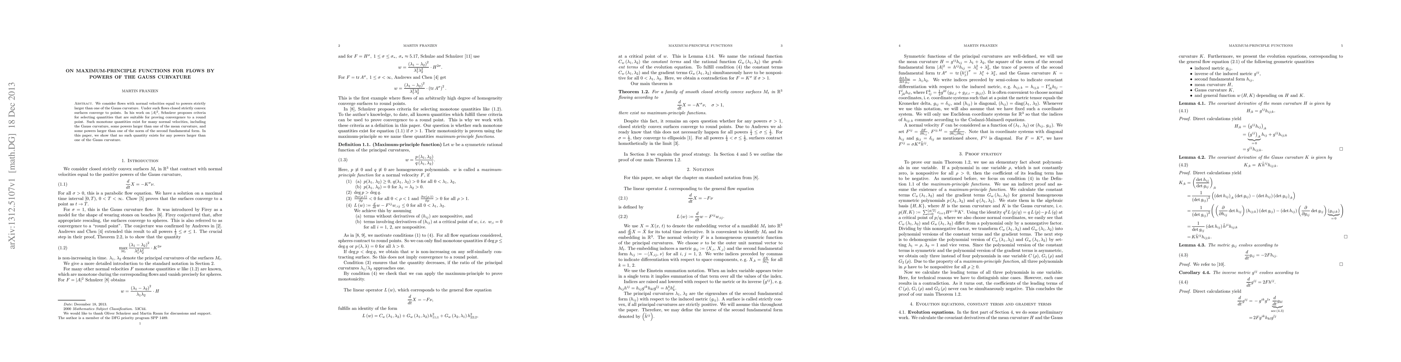 We consider flows with normal velocities equal to powers strictly larger than one of the Gauss curvature. Under such flows closed strictly convex surfaces converge to points. In his work on the square of the norm of the second fundamental form, Schn\"urer proposes criteria for selecting quantities that are suitable for proving convergence to a round point. Such monotone quantities exist for many normal velocities, including the Gauss curvature, some powers larger than one of the mean curvature, and some powers larger than one of the norm of the second fundamental form. In this paper, we show that no such quantity exists for any powers larger than one of the Gauss curvature.