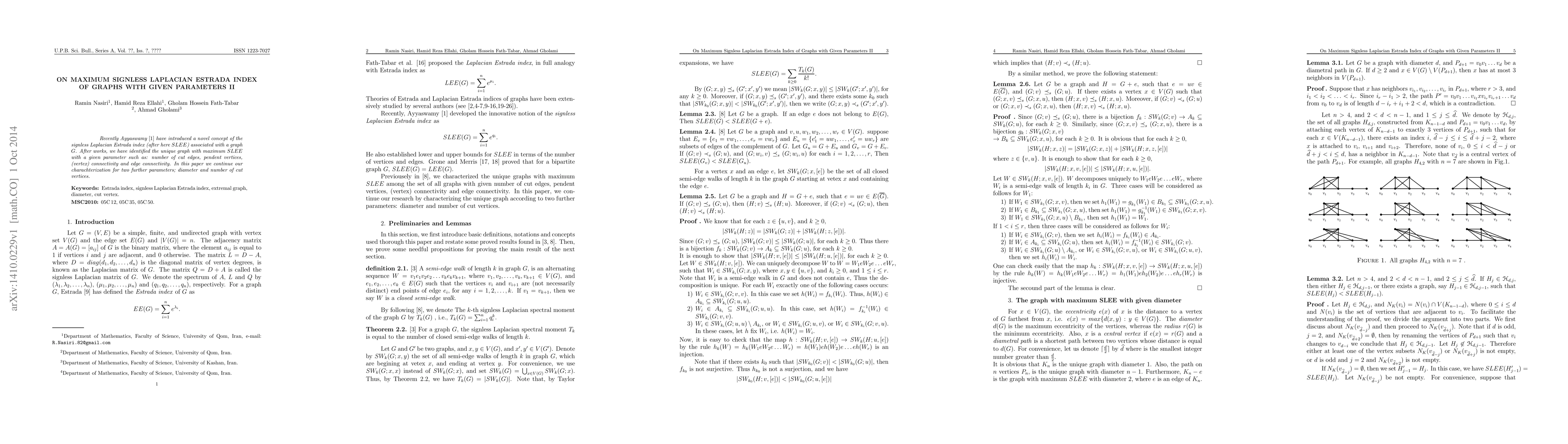 Summary: This paper extends the investigation into the signless Laplacian Estrada index (SLEE) of graphs, focusing on identifying the unique graph with the maximum SLEE given specific parameters. It builds on previous work by characterizing graphs based on diameter and number of cut vertices in addition to connectivity measures.