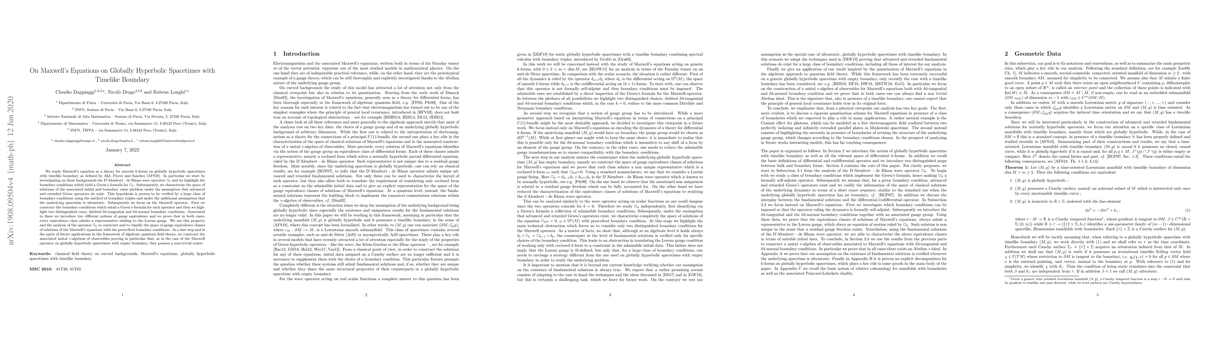 This paper explores Maxwell's equations on globally hyperbolic spacetimes with a timelike boundary, focusing on the D'Alembert-de Rham wave operator and the construction of appropriate boundary conditions. It classifies solutions under gauge equivalence and constructs associated unital $*$-algebras of observables, showing a non-trivial center in line with previous results.