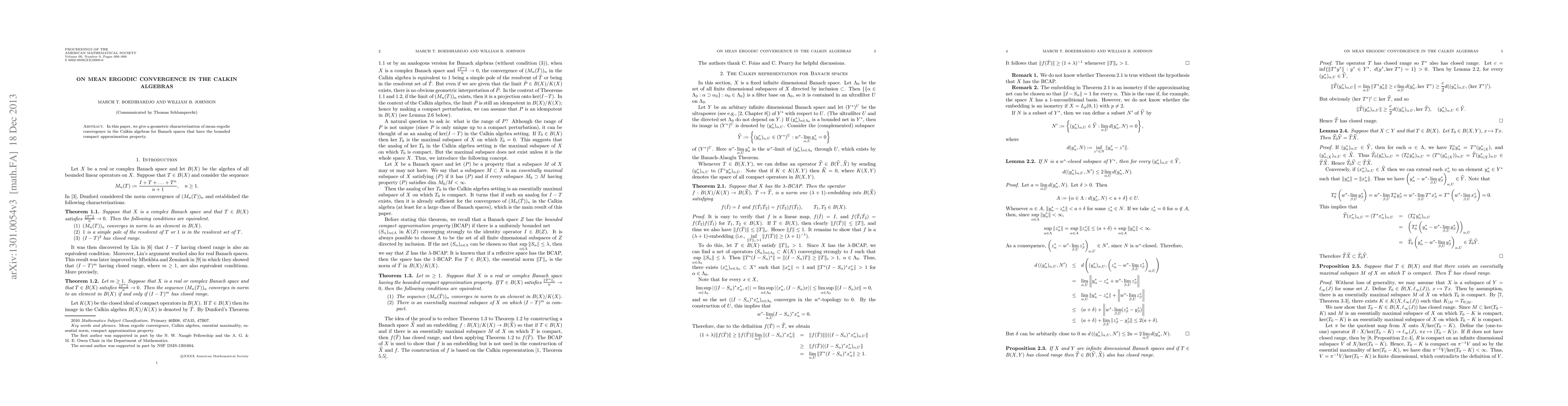 In this paper, we give a geometric characterization of mean ergodic convergence in the Calkin algebras for Banach spaces that have the bounded compact approximation property.