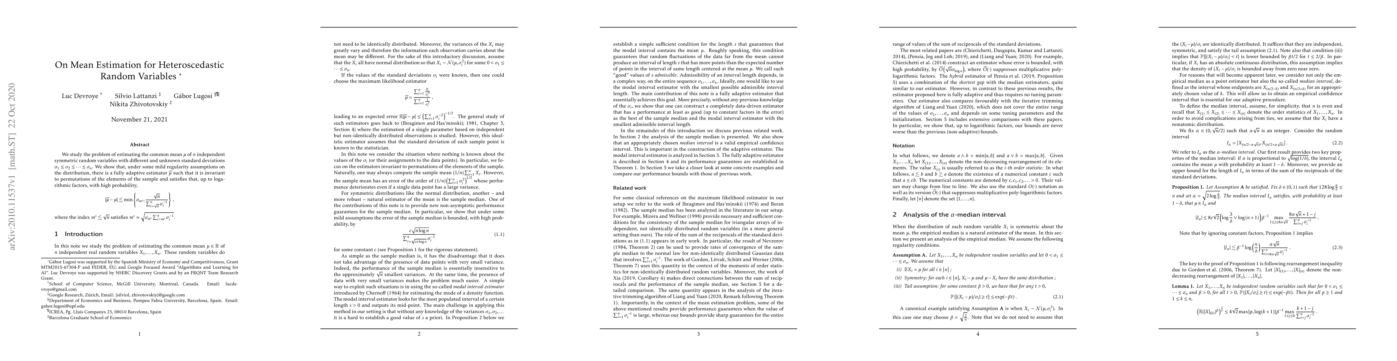 We study the problem of estimating the common mean $\mu$ of $n$ independent symmetric random variables with different and unknown standard deviations $\sigma_1 \le \sigma_2 \le \cdots \le\sigma_n$. We show that, under some mild regularity assumptions on the distribution, there is a fully adaptive estimator $\widehat{\mu}$ such that it is invariant to permutations of the elements of the sample and satisfies that, up to logarithmic factors, with high probability, \[ |\widehat{\mu} - \mu| \lesssim \min\left\{\sigma_{m^*}, \frac{\sqrt{n}}{\sum_{i = \sqrt{n}}^n \sigma_i^{-1}} \right\}~, \] where the index $m^* \lesssim \sqrt{n}$ satisfies $m^* \approx \sqrt{\sigma_{m^*}\sum_{i = m^*}^n\sigma_i^{-1}}$.