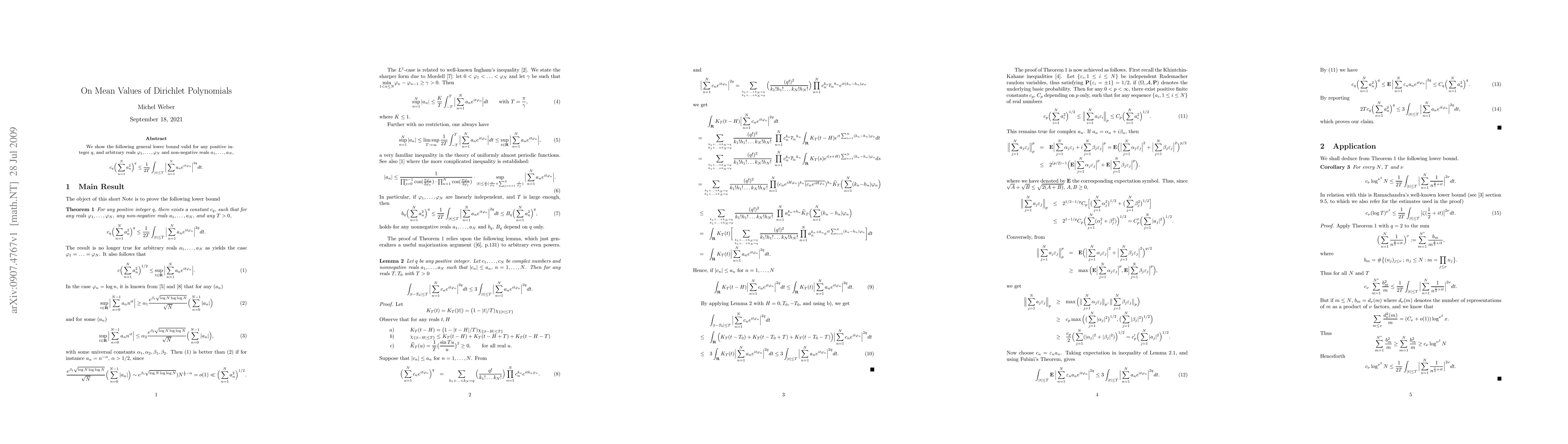 Summary: This paper establishes a general lower bound for the mean value of Dirichlet polynomials, contributing to the understanding of their asymptotic behavior. The findings provide significant insights into the distribution properties of these mathematical objects.