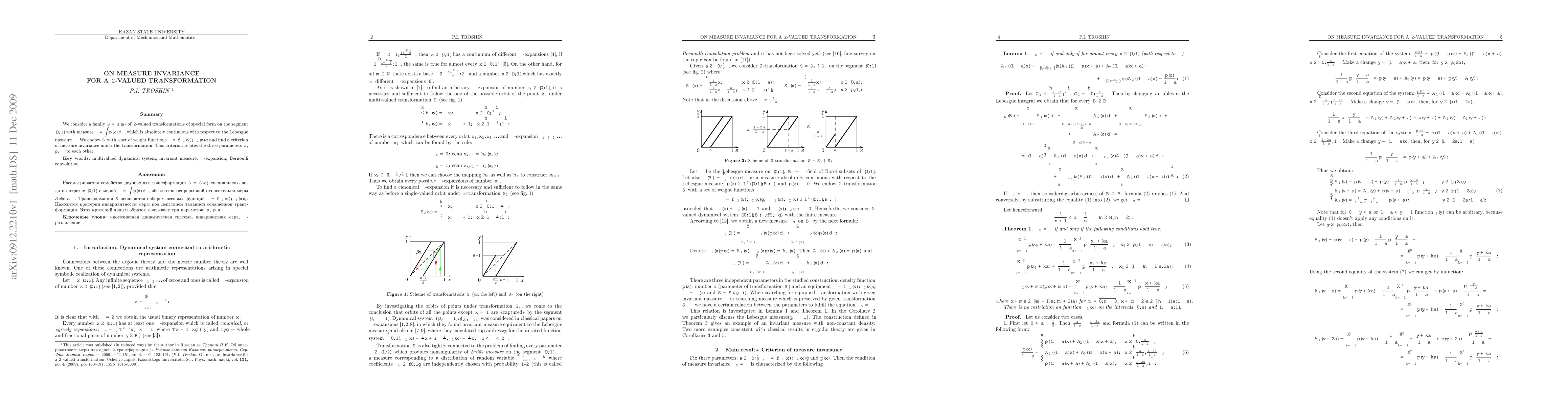 A research paper investigates 2-valued transformations on a segment with measure invariance under transformation conditions, relating parameters a, p, and weight functions to each other.
