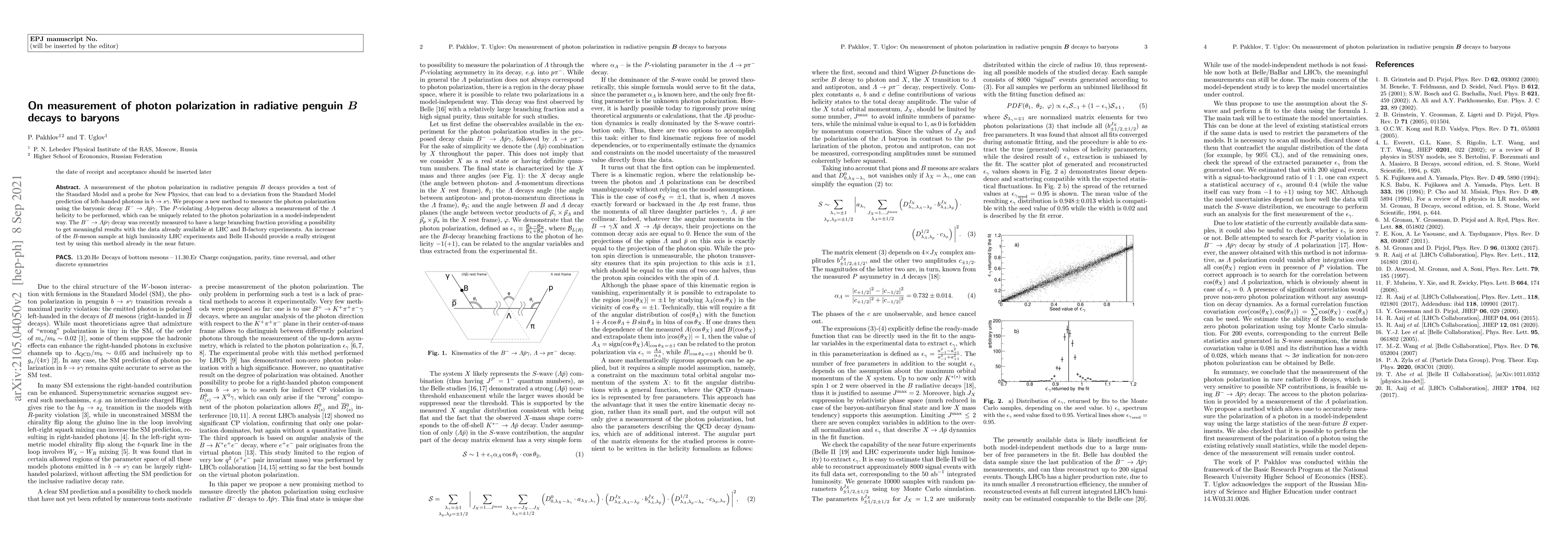 A measurement of the photon polarization in radiative penguin $B$ decays provides a test of the Standard Model and a probe for New Physics, that can lead to a deviation from the Standard Model prediction of left-handed photons in $b\to s \gamma$. We propose a new method to measure the photon polarization using the baryonic decay $B^- \to \Lambda\bar{p} \gamma$. The $P$-violating $\Lambda$-hyperon decay allows a measurement of the $\Lambda$ helicity to be performed, which can be uniquely related to the photon polarization in a model-independent way. The $B^- \to \Lambda\bar{p} \gamma$ decay was recently measured to have a large branching fraction providing a possibility to get meaningful results with the data already available at LHC and B-factory experiments. An increase of the $B$-meson sample at high luminosity LHC experiments and Belle II should provide a really stringent test by using this method already in the near future.