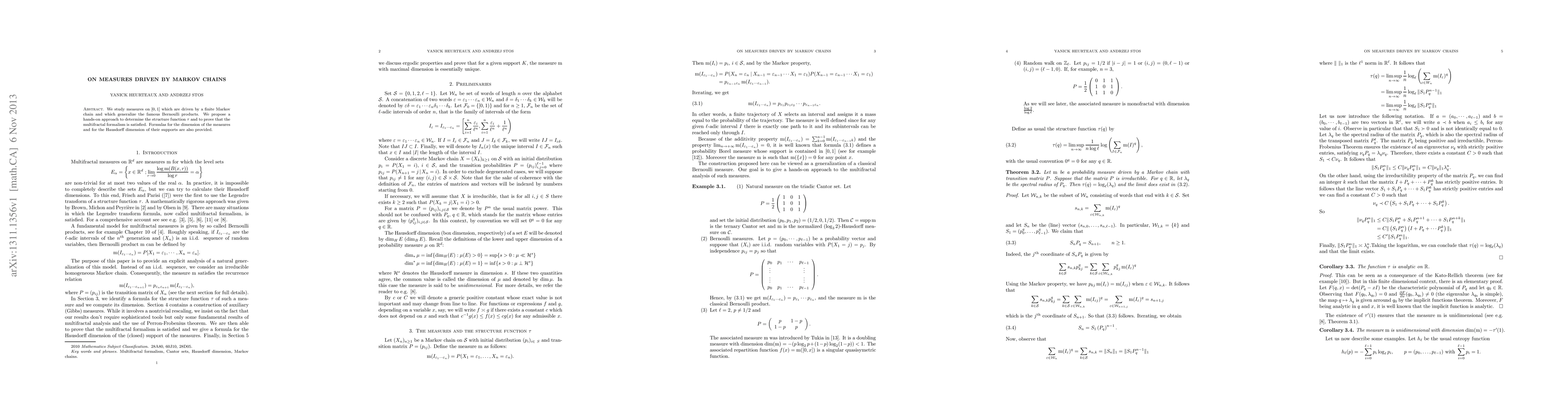 We study measures on $[0,1]$ which are driven by a finite Markov chain and which generalize the famous Bernoulli products. We propose a hands-on approach to determine the structure function $\tau$ and to prove that the multifractal formalism is satisfied. Formulas for the dimension of the measures and for the Hausdorff dimension of their supports are also provided.
