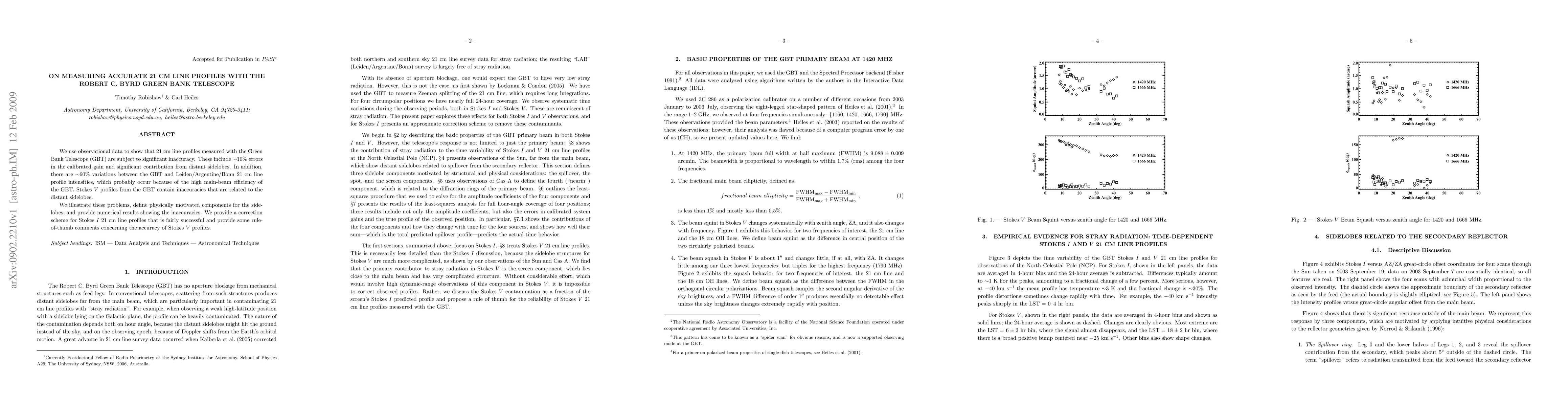 We use observational data to show that 21 cm line profiles measured with the Green Bank Telescope (GBT) are subject to significant inaccuracy. These include ~10% errors in the calibrated gain and significant contribution from distant sidelobes. In addition, there are ~60% variations between the GBT and Leiden/Argentine/Bonn 21 cm line profile intensities, which probably occur because of the high main-beam efficiency of the GBT. Stokes V profiles from the GBT contain inaccuracies that are related to the distant sidelobes. We illustrate these problems, define physically motivated components for the sidelobes, and provide numerical results showing the inaccuracies. We provide a correction scheme for Stokes I 21 cm line profiles that is fairly successful and provide some rule-of-thumb comments concerning the accuracy of Stokes V profiles.