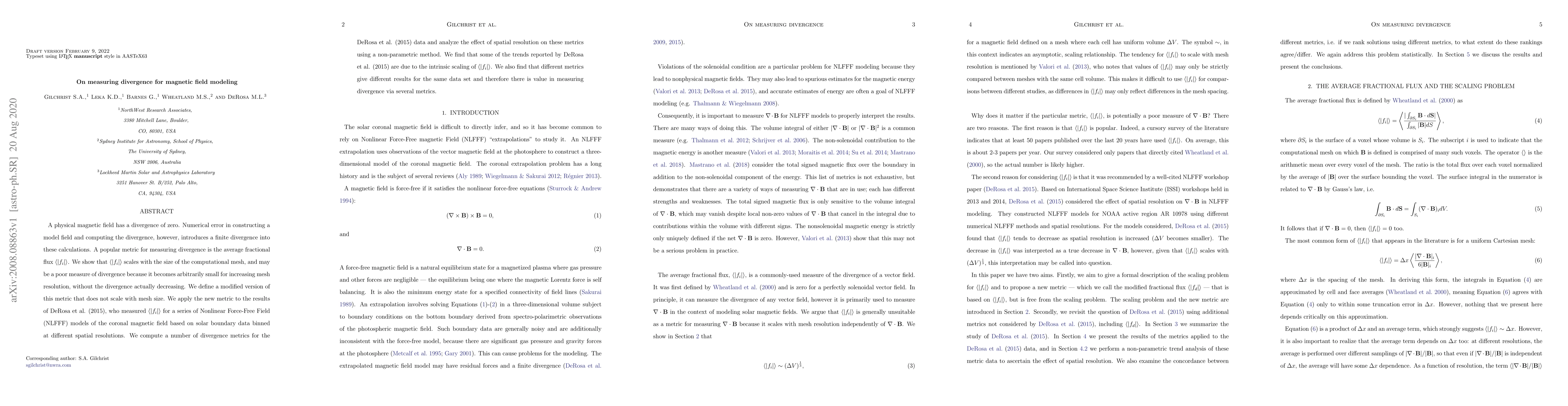 A physical magnetic field has a divergence of zero. Numerical error in constructing a model field and computing the divergence, however, introduces a finite divergence into these calculations. A popular metric for measuring divergence is the average fractional flux $\langle |f_{i}| \rangle$. We show that $\langle |f_{i}| \rangle$ scales with the size of the computational mesh, and may be a poor measure of divergence because it becomes arbitrarily small for increasing mesh resolution, without the divergence actually decreasing. We define a modified version of this metric that does not scale with mesh size. We apply the new metric to the results of DeRosa et al. (2015), who measured $\langle |f_{i}| \rangle$ for a series of Nonlinear Force-Free Field (NLFFF) models of the coronal magnetic field based on solar boundary data binned at different spatial resolutions. We compute a number of divergence metrics for the DeRosa et al. (2015) data and analyze the effect of spatial resolution on these metrics using a non-parametric method. We find that some of the trends reported by DeRosa et al. (2015) are due to the intrinsic scaling of $\langle |f_{i}| \rangle$. We also find that different metrics give different results for the same data set and therefore there is value in measuring divergence via several metrics.
