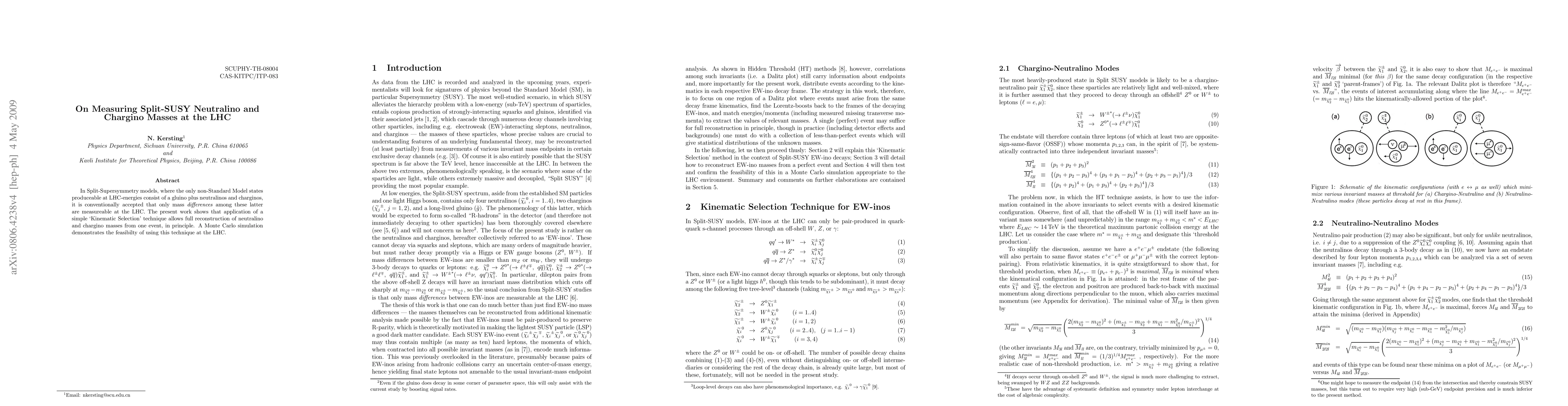 A new technique called 'Kinematic Selection' allows for the full reconstruction of neutralino and chargino masses from a single LHC event in Split-SUSY models, demonstrating its feasibility at the LHC.