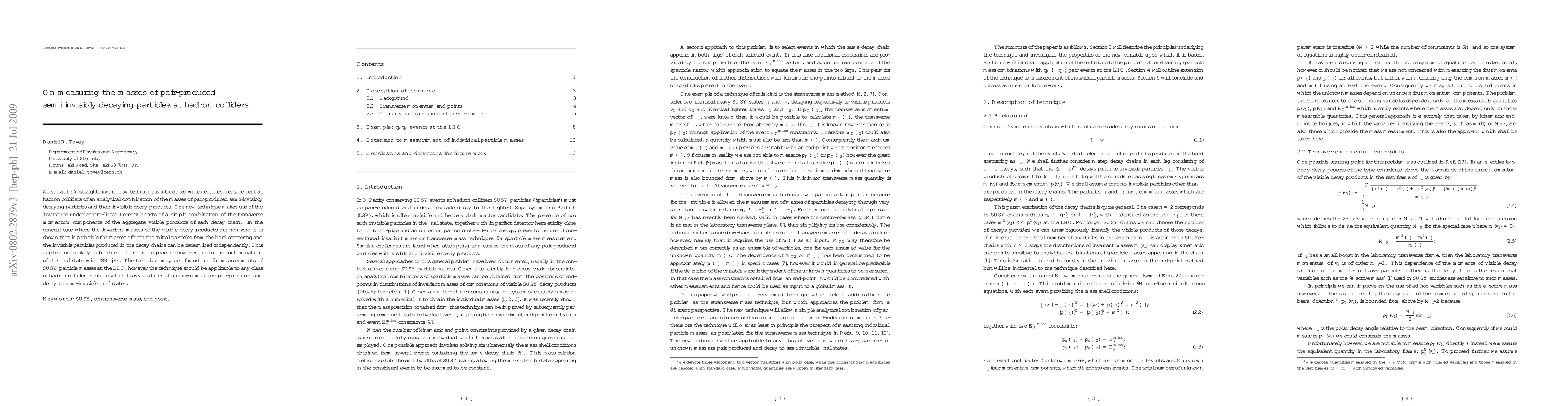 A straightforward new technique is introduced which enables measurement at hadron colliders of an analytical combination of the masses of pair-produced semi-invisibly decaying particles and their invisible decay products. The new technique makes use of the invariance under contra-linear Lorentz boosts of a simple combination of the transverse momentum components of the aggregate visible products of each decay chain. In the general case where the invariant masses of the visible decay products are non-zero it is shown that in principle the masses of both the initial particles from the hard scattering and the invisible particles produced in the decay chains can be determined independently. This application is likely to be difficult to realise in practice however due to the contamination of the final state with ISR jets. The technique may be of most use for measurements of SUSY particle masses at the LHC, however the technique should be applicable to any class of hadron collider events in which heavy particles of unknown mass are pair-produced and decay to semi-invisible final states.