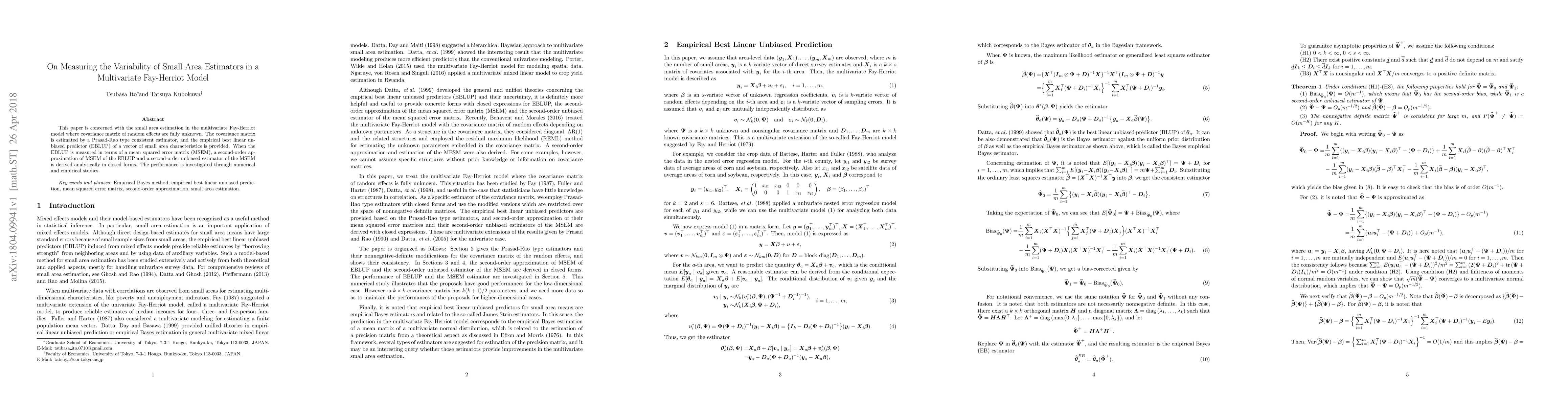This paper develops a multivariate Fay-Herriot model for small area estimation with unknown covariance matrices, employing a consistent estimator and deriving an EBLUP. It provides a second-order approximation and unbiased estimator for the mean squared error matrix, validated through numerical and empirical studies.