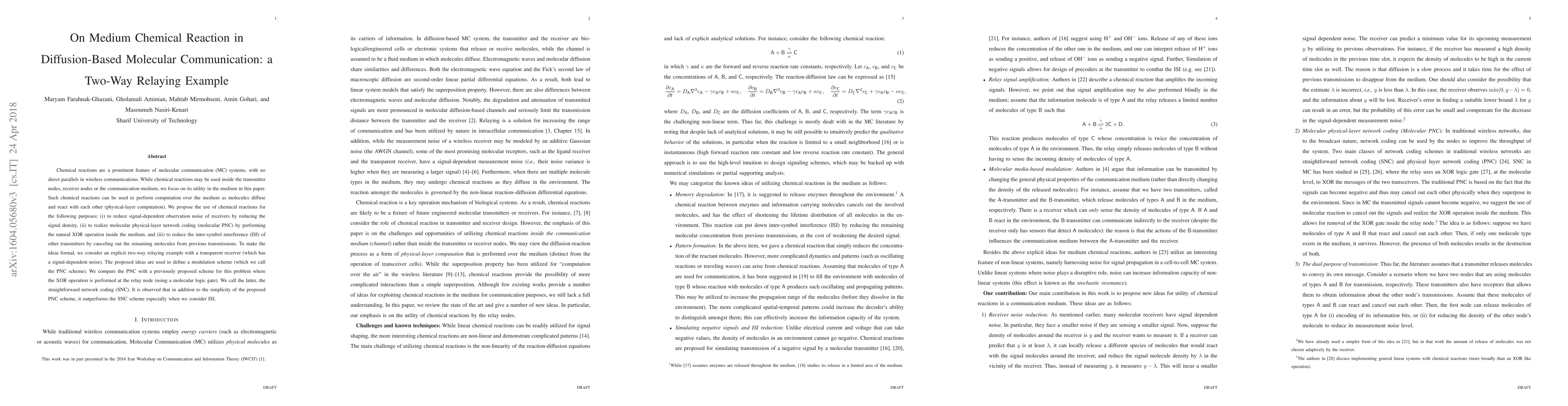 Researchers propose using chemical reactions in molecular communication to reduce noise and interference, outperforming a previously proposed scheme in terms of signal processing and network coding capabilities.