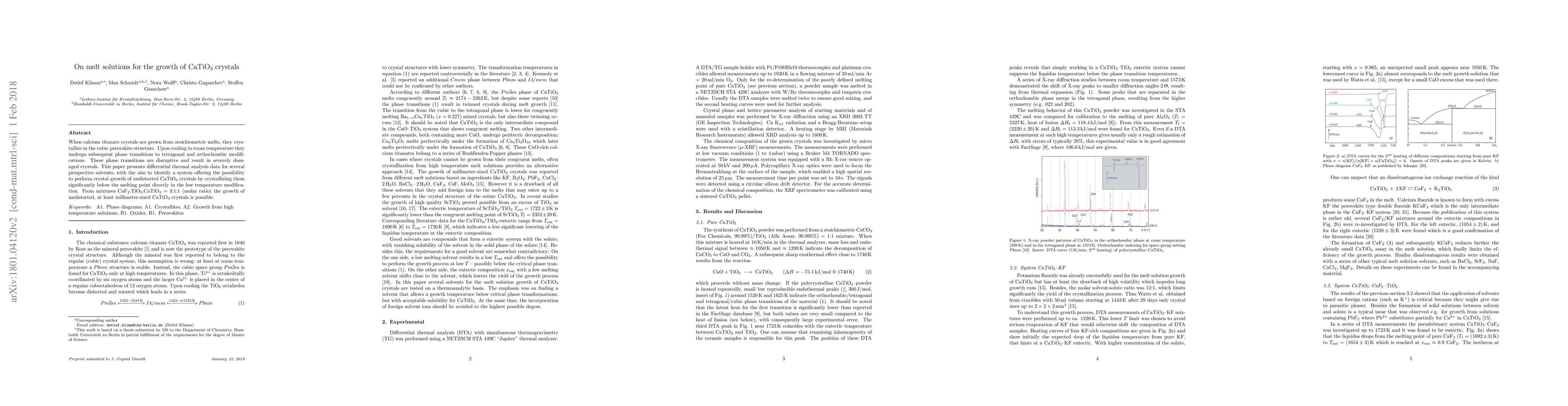 Researchers found a melt solution that allows for the growth of undistorted CaTiO3 crystals by crystallizing them below their melting point in the low-temperature modification. The optimal system is a mixture of CaF2:TiO2:CaTiO3 with a 3:1:1 molar ratio.