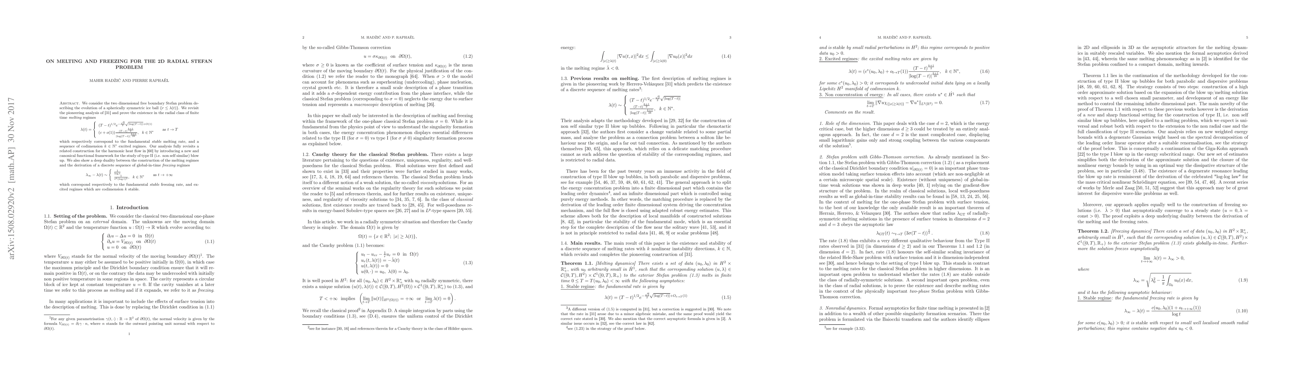 This paper revisits the two-dimensional radial Stefan problem for melting and freezing of a spherical ice ball, proving the existence of finite time melting and global-in-time freezing regimes. It introduces a new functional framework for studying type II blow-up and establishes a duality between melting and freezing regimes.