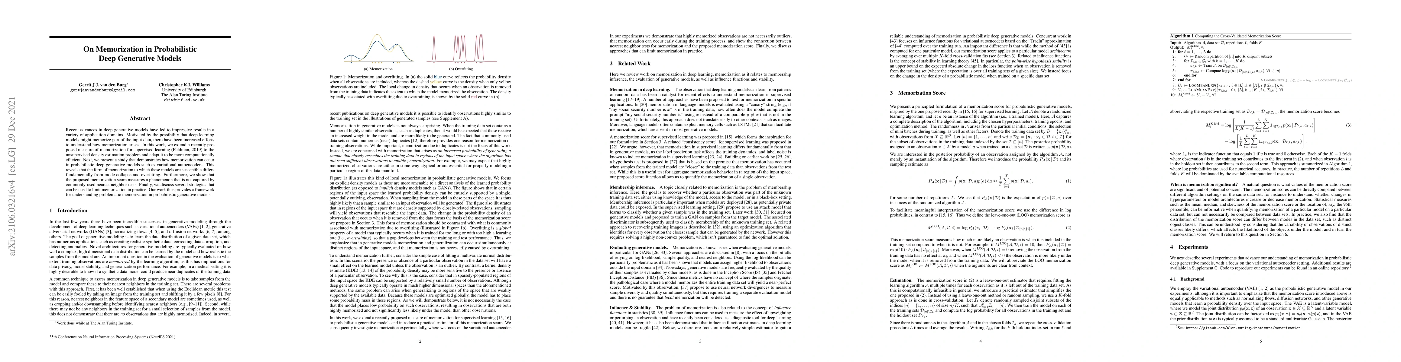 This paper extends a memorization measure from supervised to unsupervised learning, demonstrating that probabilistic deep generative models like variational autoencoders can memorize input data, a phenomenon distinct from overfitting and mode collapse. It proposes strategies to mitigate memorization and provides a framework for understanding this issue.