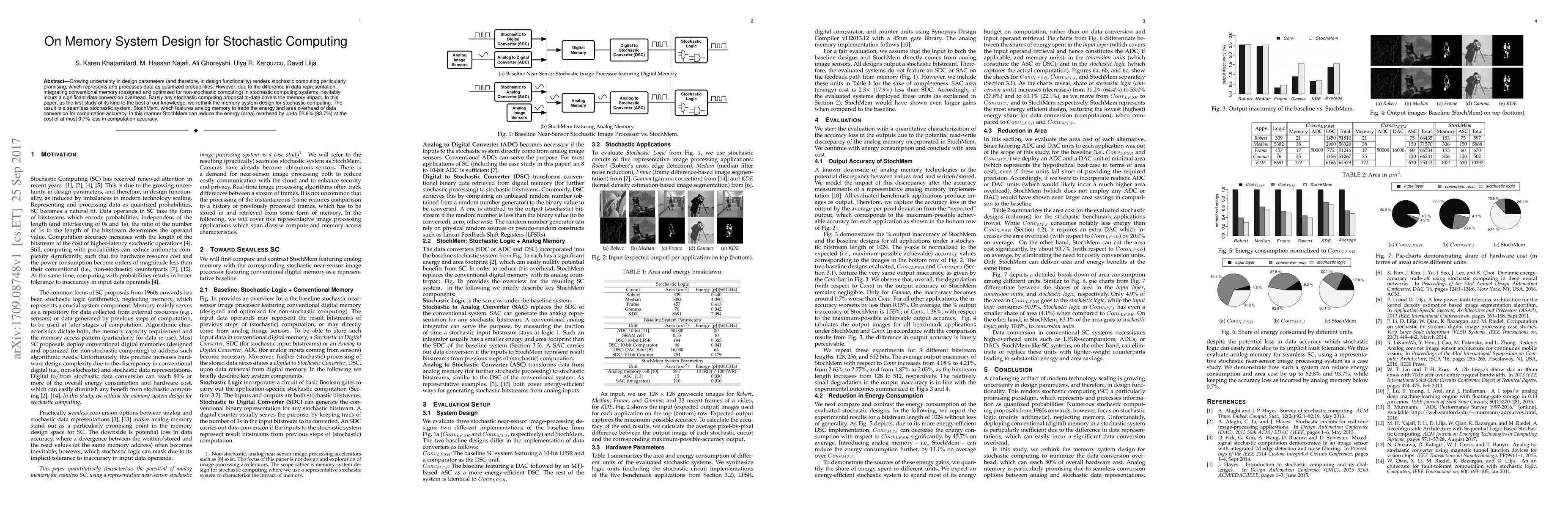 Researchers designed a new memory system for stochastic computing that reduces energy and area overhead while maintaining computation accuracy. This design, called StochMem, achieves up to 52.8% reduction in energy/area overhead at a minimal loss of 0.7% accuracy.