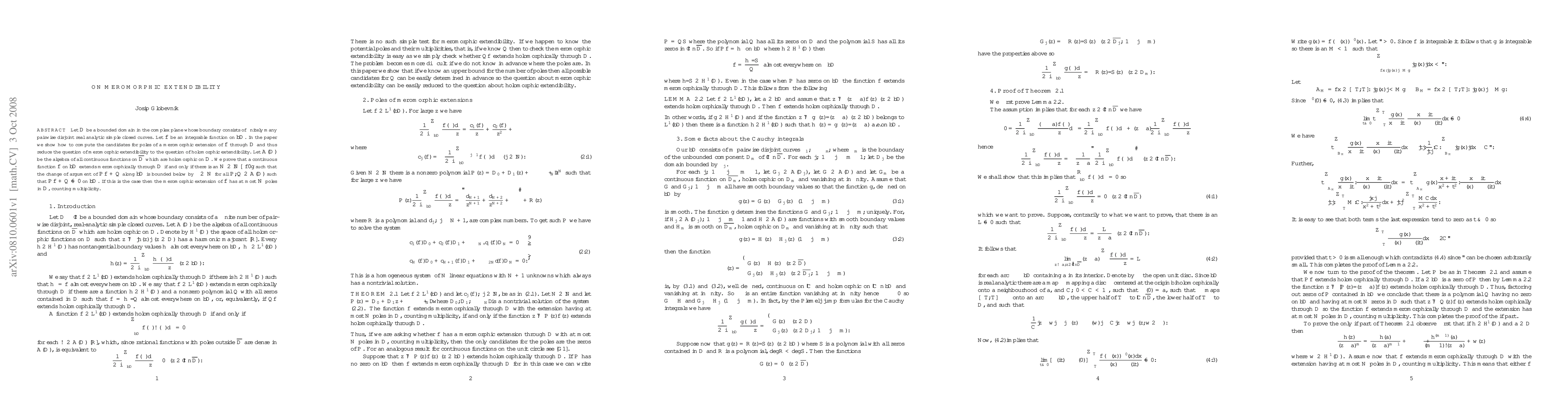 A study provides a method to determine meromorphic extendibility of functions through bounded domains in the complex plane, relating it to holomorphic extendibility via an argument principle, and establishing a bound on the number of poles.