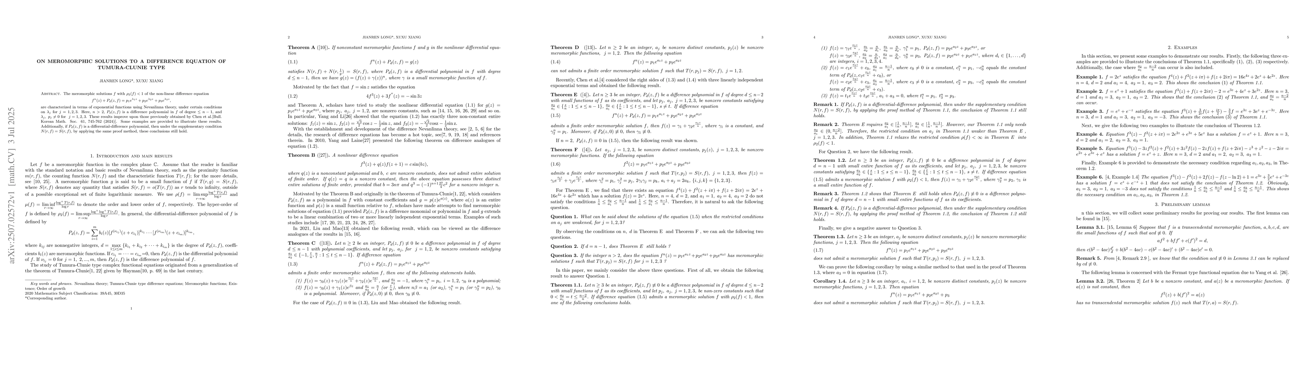 The meromorphic solutions $f$ with $\rho_2(f)<1$ of the non-linear difference equation \begin{align*} f^n(z)+P_d(z,f)=p_1e^{{\lambda_1}z}+p_2e^{{\lambda_2}z}+p_3e^{{\lambda_3}z}, \end{align*} are characterized in terms of exponential functions using Nevanlinna theory, under certain conditions on $\lambda_j$ for $j=1,2,3$. Here, $n>2$, $P_d(z,f)$ is a difference polynomial in $f$ of degree $\le n-1$, and $\lambda_j,~p_j\not=0$ for $~j=1,2,3$. These results improve upon those previously obtained by Chen et al.[Bull. Korean Math. Soc. 61, 745-762 (2024)]. Some examples are provided to illustrate these results. Additionally, if $P_d(z,f)$ is a differential-difference polynomial, then under the supplementary condition $N(r,f)=S(r,f)$, by applying the same proof method, these conclusions still hold.