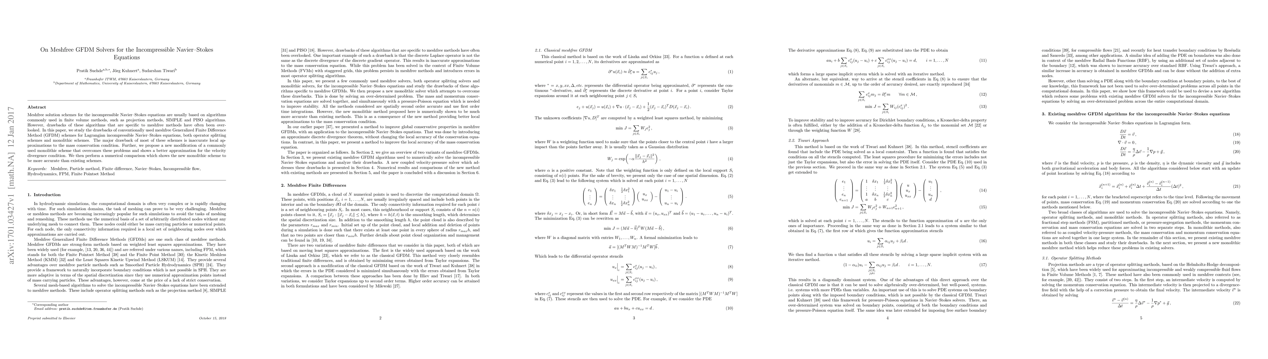 This paper investigates the limitations of conventional meshfree GFDM schemes for solving the incompressible Navier-Stokes equations, particularly focusing on inaccuracies in mass conservation. A new modified monolithic scheme is proposed to address these issues, demonstrating improved accuracy in numerical comparisons.